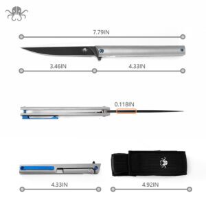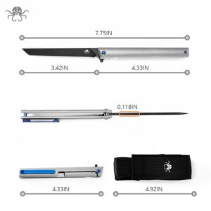 Klaken Knives – B13-TITN-BK – Regent – Folding Knife – D2 Coated Tanto – Titanium – Natural