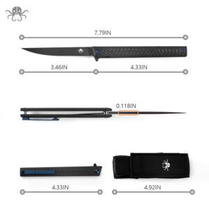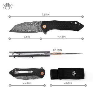 Klaken Knives – J338-CF-DAM – Askael – Folding Knife – Damascus Wharncliffe – Carbon Fiber – Black