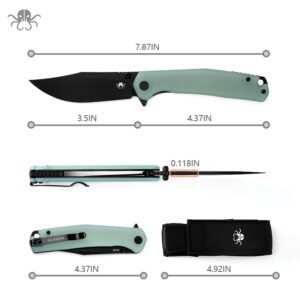 Klaken Knives – J335-JD-BK – The Lancet – Folding Knife – 14C28N Coated Clip Point – G10 – Jade