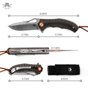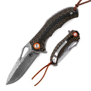Klaken Knives – J345-BR-DAM – Tideborn – Folding Knife – Damascus Damascus Spear Point – G10 – Brown