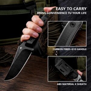 Klaken Knives – B13-CFTN-BK – Regent – Folding Knife – D2 Coated Tanto – Carbon Fiber – Black