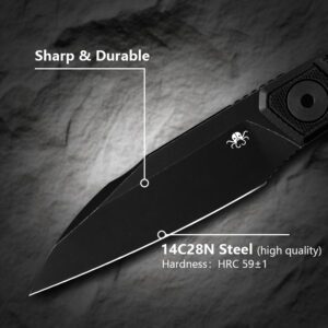 Klaken Knives – Z068-BK-BK – Phantom – Fixed Blade Knife – 14C28N Blackwash Wharncliffe – G10 – Black
