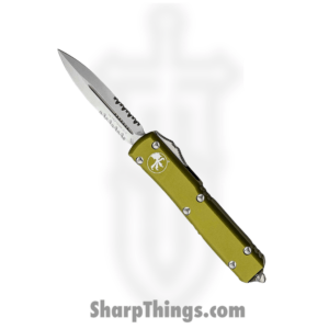 Microtech – 149-12BH – UTX-70 Bounty Hunter Serrated – OTF Auto – Apocalyptic Tanto – 6061-T6 Aluminum – Green Apocalyptic