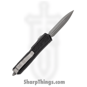 Microtech – 231-11 – UTX-85 – OTF Auto – M390, 204P, Elmax, or XHP Stonewash Drop Point P/S – Aluminum – Black