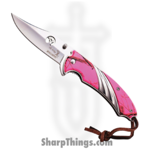 Elk Ridge – ERA540PC – A/O Linerlock – Folding Knife – Stainless Polished Clip Point – CF Aluminum Inlay – Pink Camo Silver