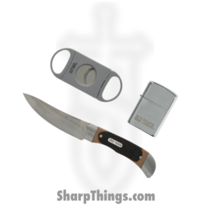 Schrade Knives – SCHP1158666 – Fixed Blade/Lighter Set – Fixed Blade Knife – Stainless Satin Full Tang – Sawcut Delrin – Silver
