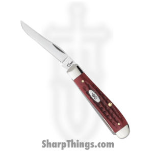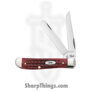 Case Cutlery – CA31952 – Mini Trapper – Folding Knife – Carbon Steel Polished Clip/Spey – Peach Seed Jig Bone – Red