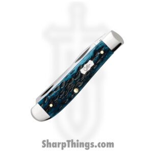 Case Cutlery – CA51852 – Mini Trapper – Folding Knife – Tru-Sharp Stainless Polished Clip Spey – Peach Seed Jigged Bone – Blue