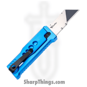 Reate Knives – EXO44SSDBL – EXO-U-V2 – Gravity Knife – Stainless Satin Utility – Aluminum Speedhole – Blue