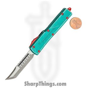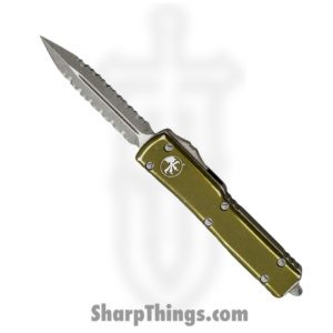Microtech – 149-12BH – UTX-70 Bounty Hunter Serrated – OTF Auto – Apocalyptic Tanto – 6061-T6 Aluminum – Green Apocalyptic