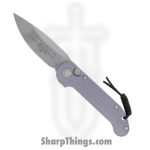 Microtech – 135-10GY – L.U.D.T. – Automatic Knife – Elmax, M390, 204P Stonewash Drop Point – 6061-T6 Aluminum – Gray