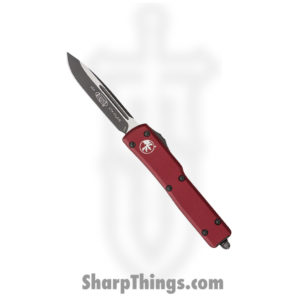 Microtech – 148-1MR – UTX-70 – OTF Auto – Elmax, M390, 204P Two Tone Drop Point – 6061-T6 Aluminum – Merlot