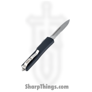 Microtech – 122-2T – Ultratech D/E Partially Serrated – OTF Auto – M390 Black Dagger – 6061-T6 Aluminum – Black