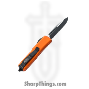 Microtech – 231-2OR – UTX-85 – OTF Auto – Elmax, M390, 204P Two Tone Drop Point – 6061-T6 Aluminum – Orange