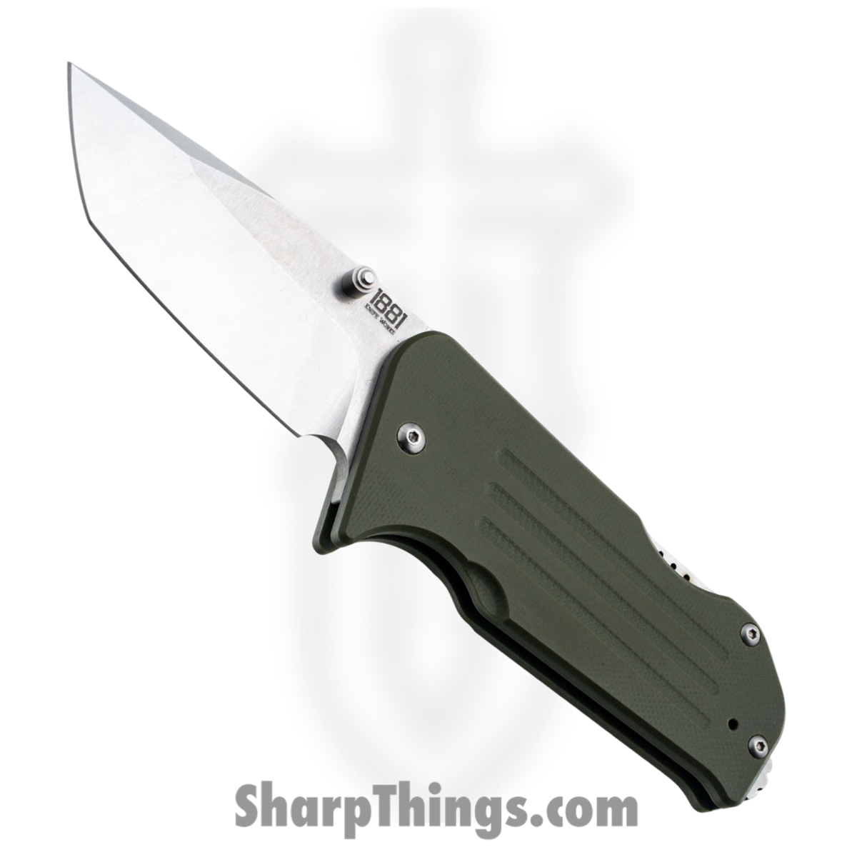 1881 Knife Works – MMS008 – Broadway – Folding Knife – S45VN Tumbled Tanto – G10 – OD Green
