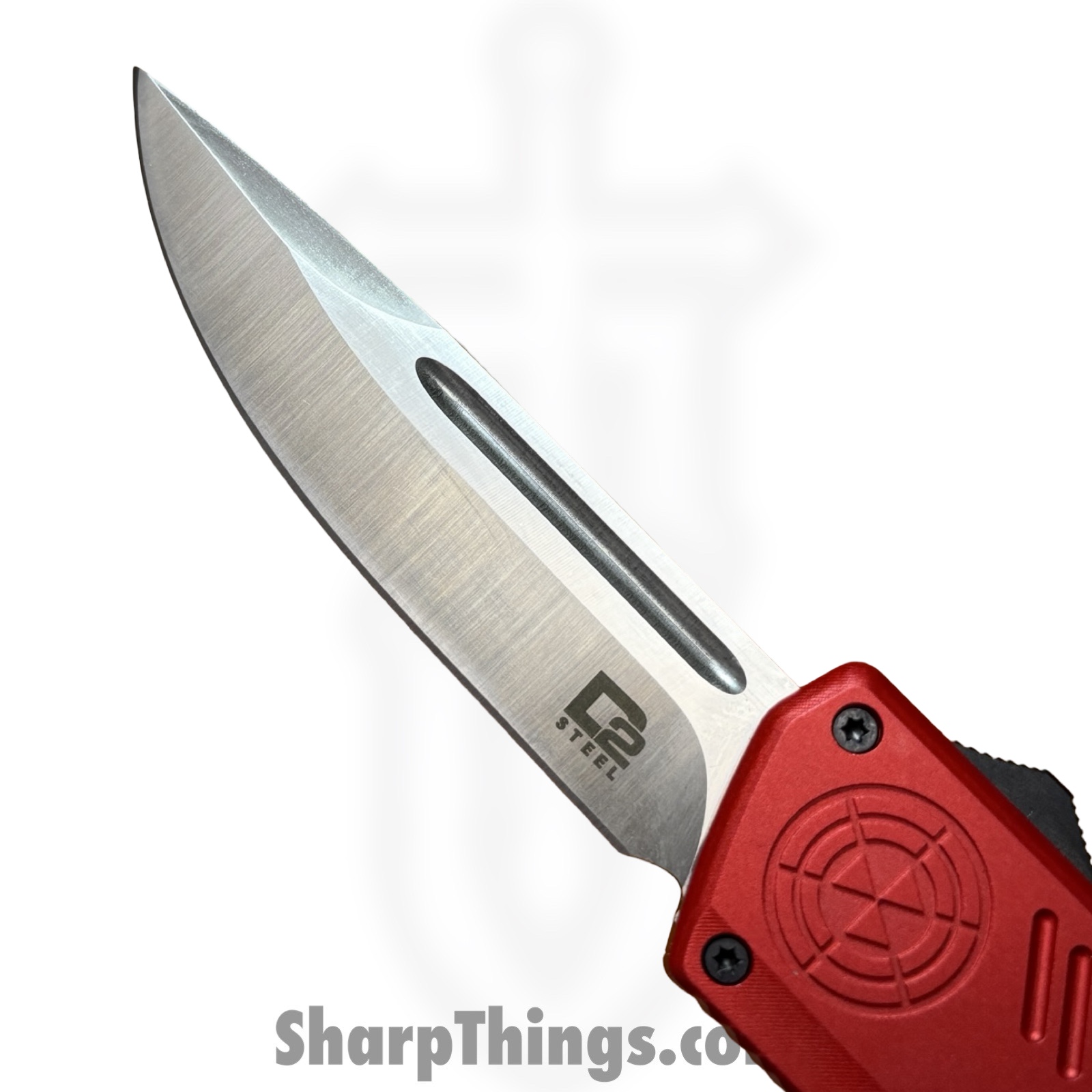UltraLite ATOMIC – OTF Auto – D2 Satin Drop Point – Aluminum – Red