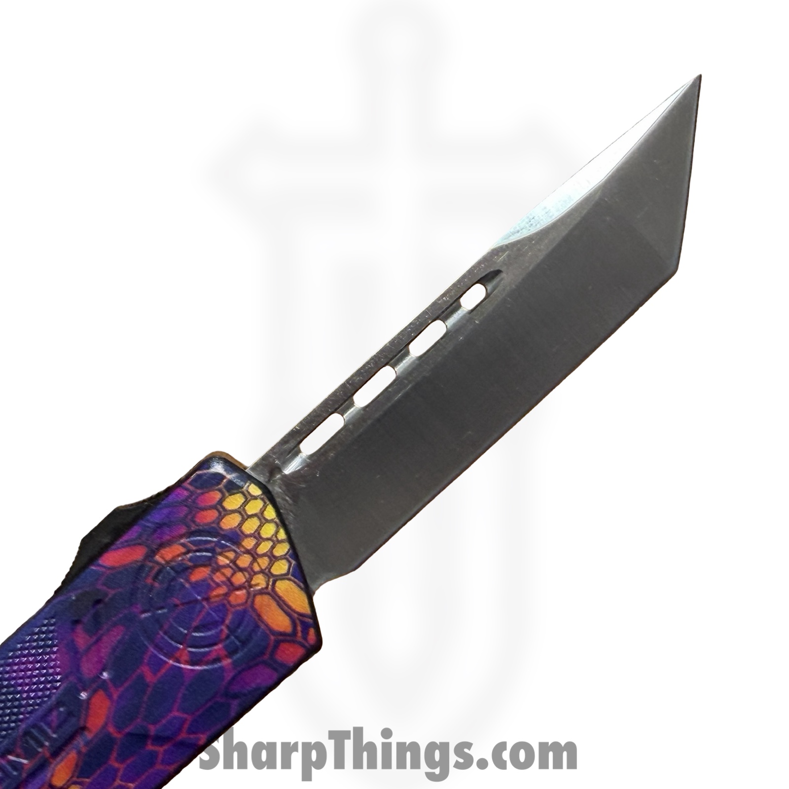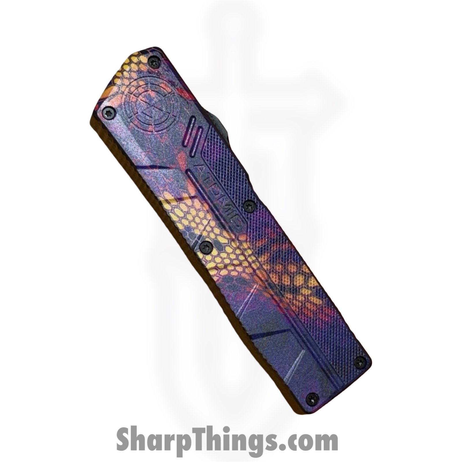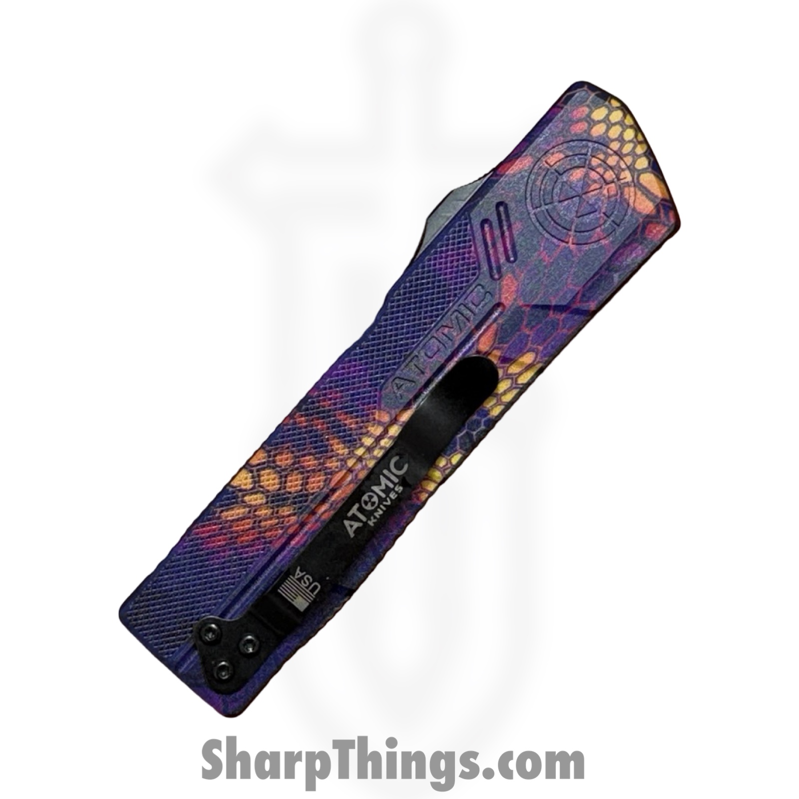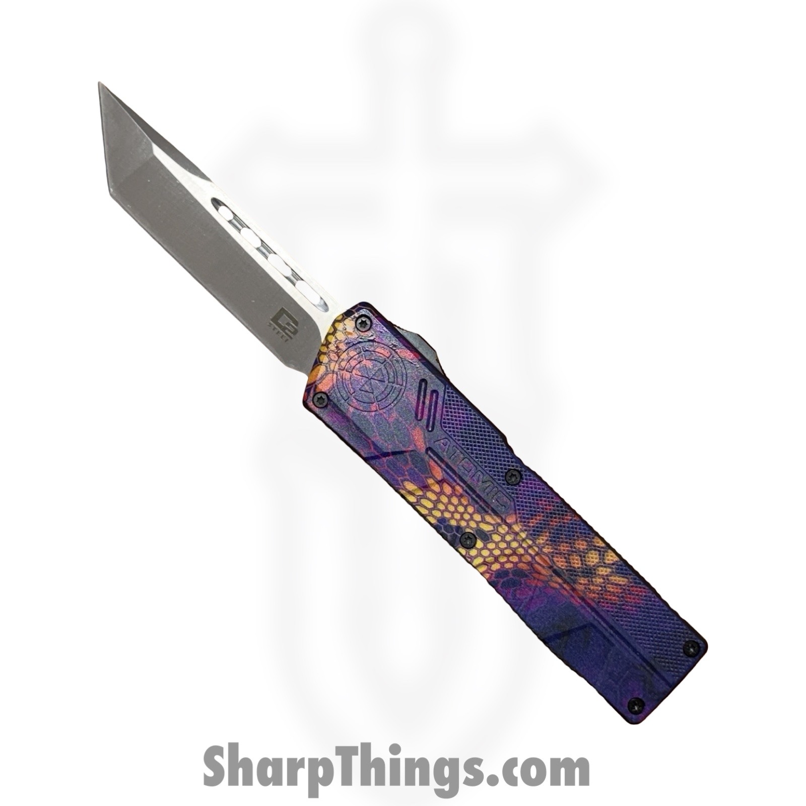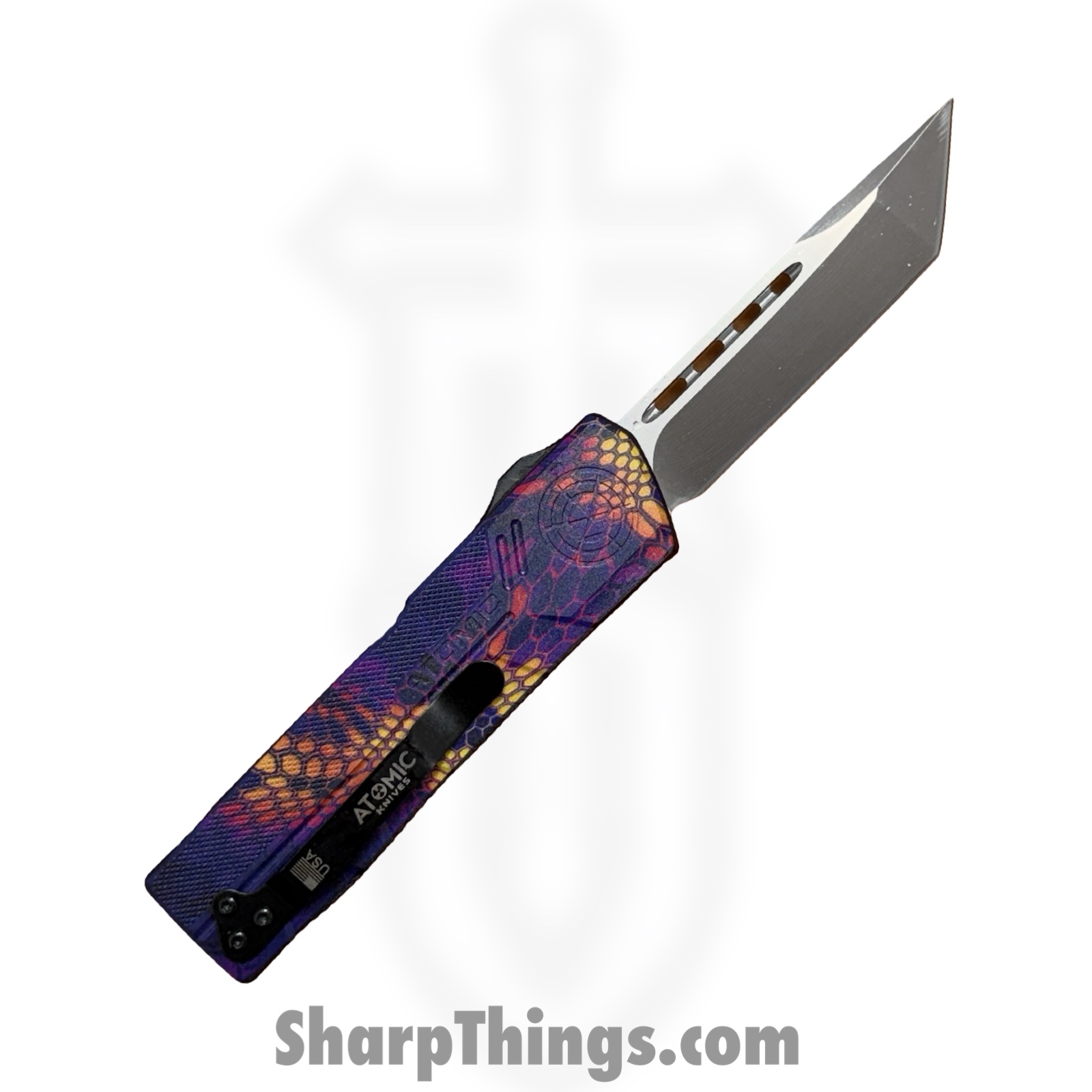 Atomic Knives – WNS-DT01SCMP – UltraLite ATOMIC – OTF Auto – D2 Satin Tanto – Aluminum – Snake Camo