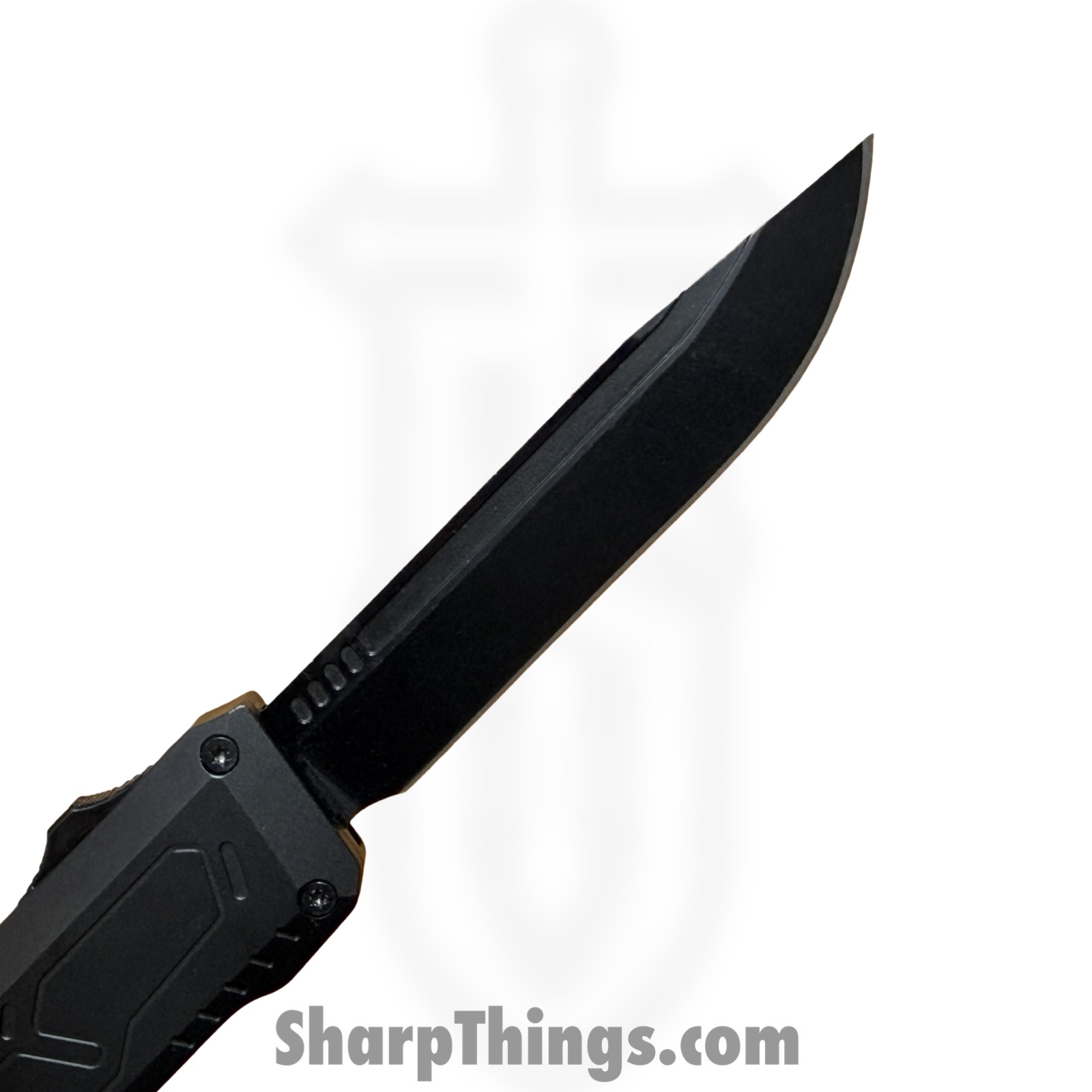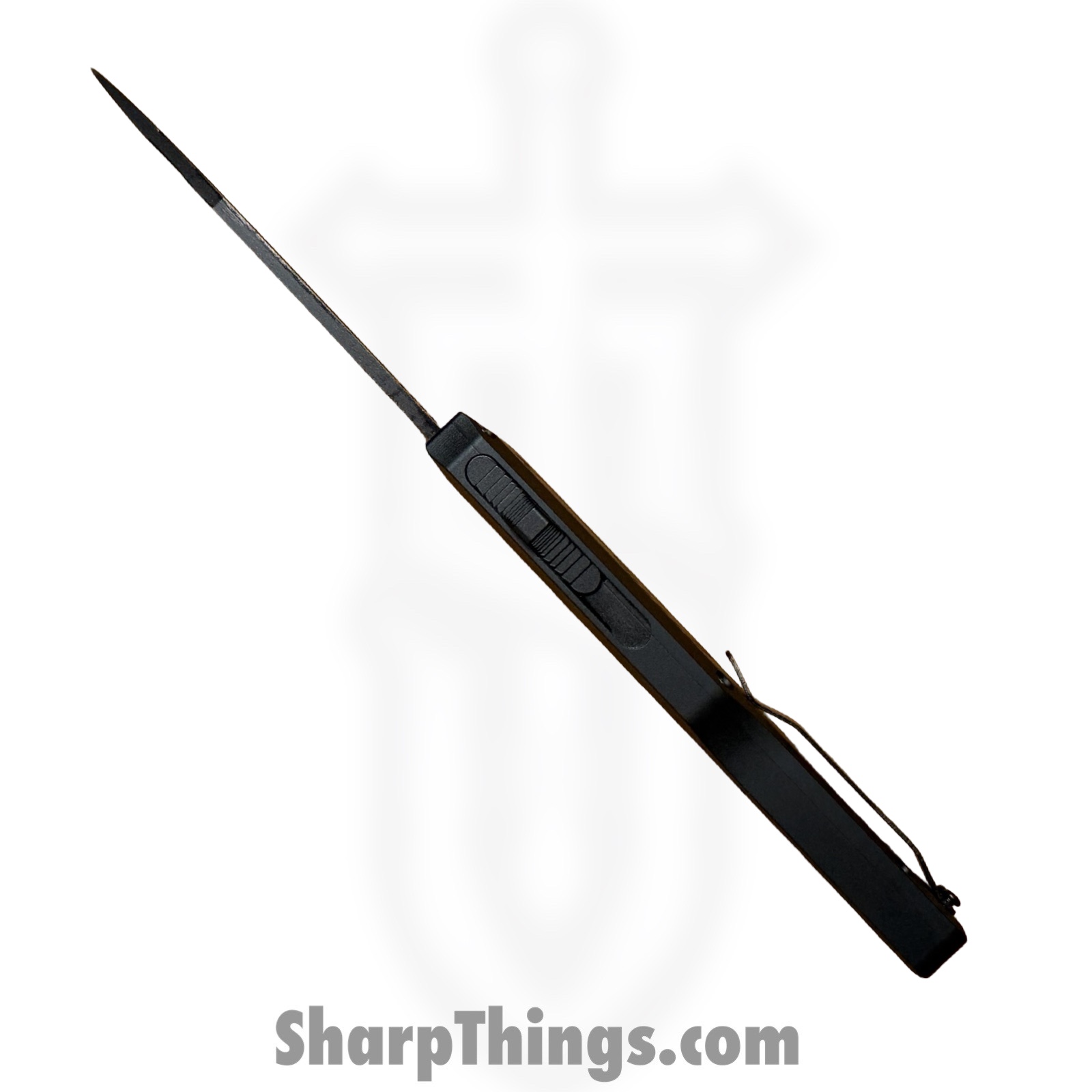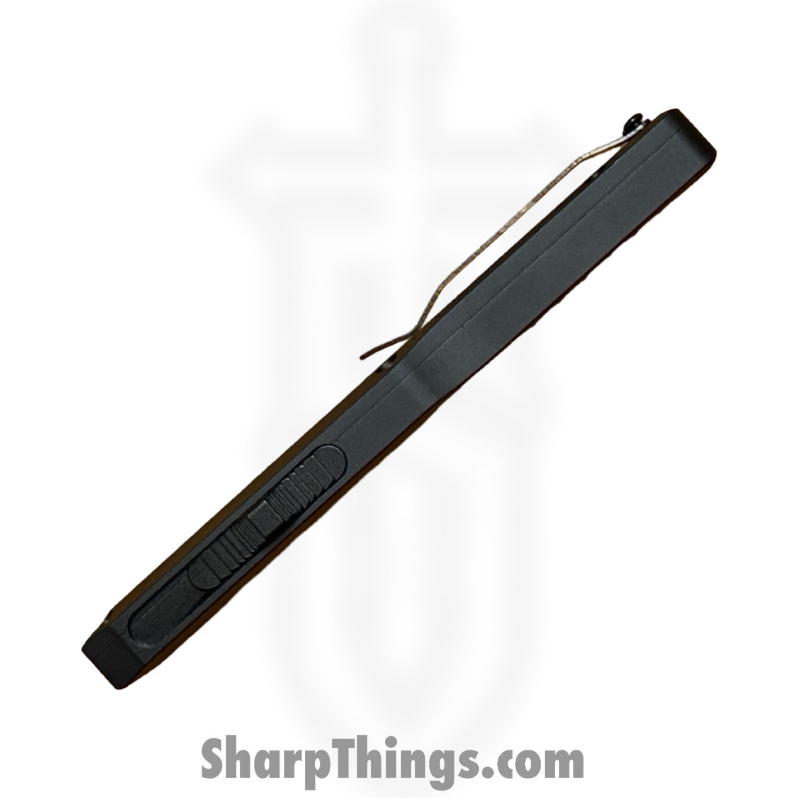 The handle is formed from durable anodized aluminum, providing a comfortable and strong grip without excess weight. Its ergonomic shaping allows secure handling in a variety of grips, and the black finish maintains a clean, professional look. The dual-action OTF mechanism offers reliable deployment and retraction with minimal effort, giving users fast one-handed operation backed by consistent internal track alignment and spring tension.