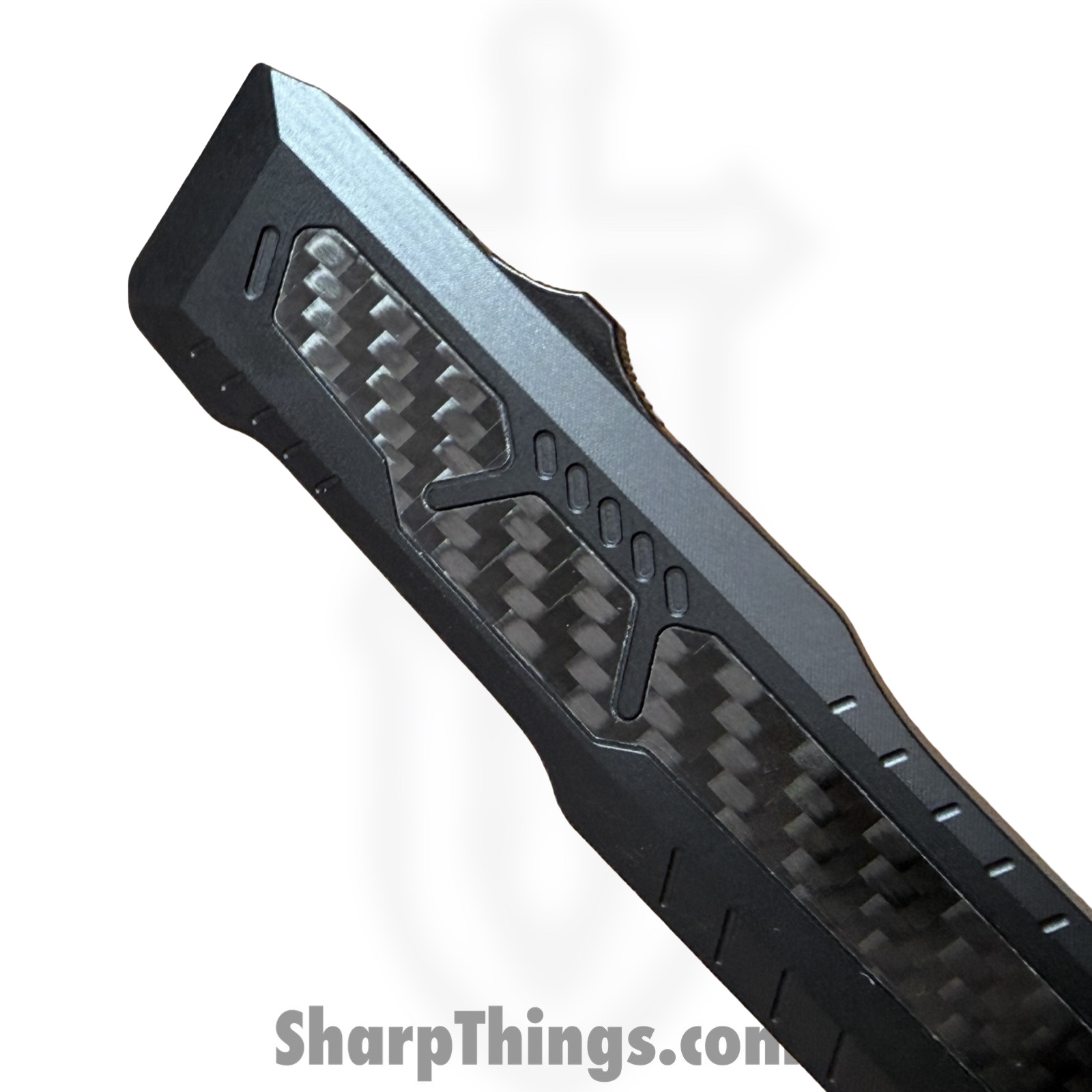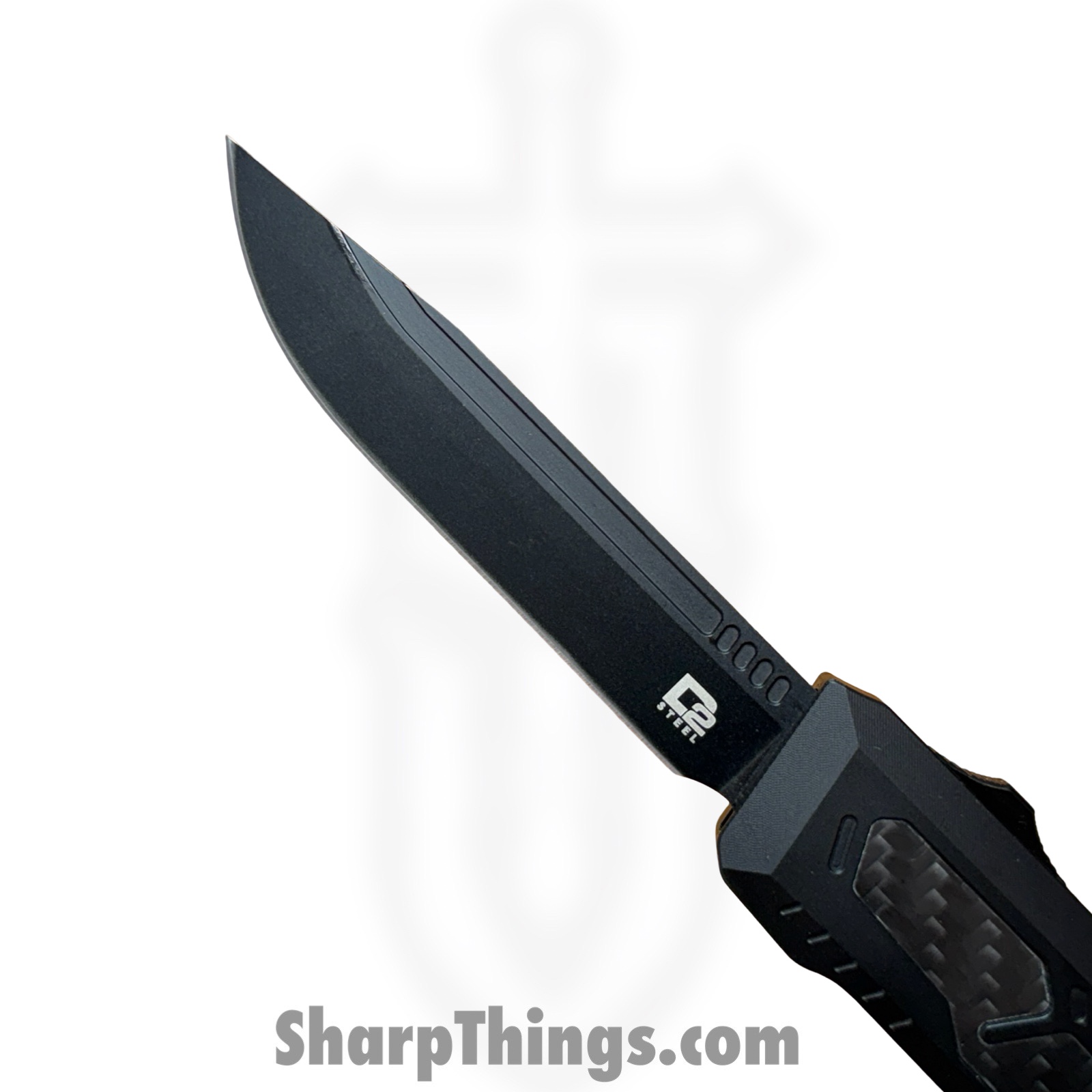 UltraLite ATOMIC – OTF Auto – D2 Coated Drop Point – Aluminum and CF – Black