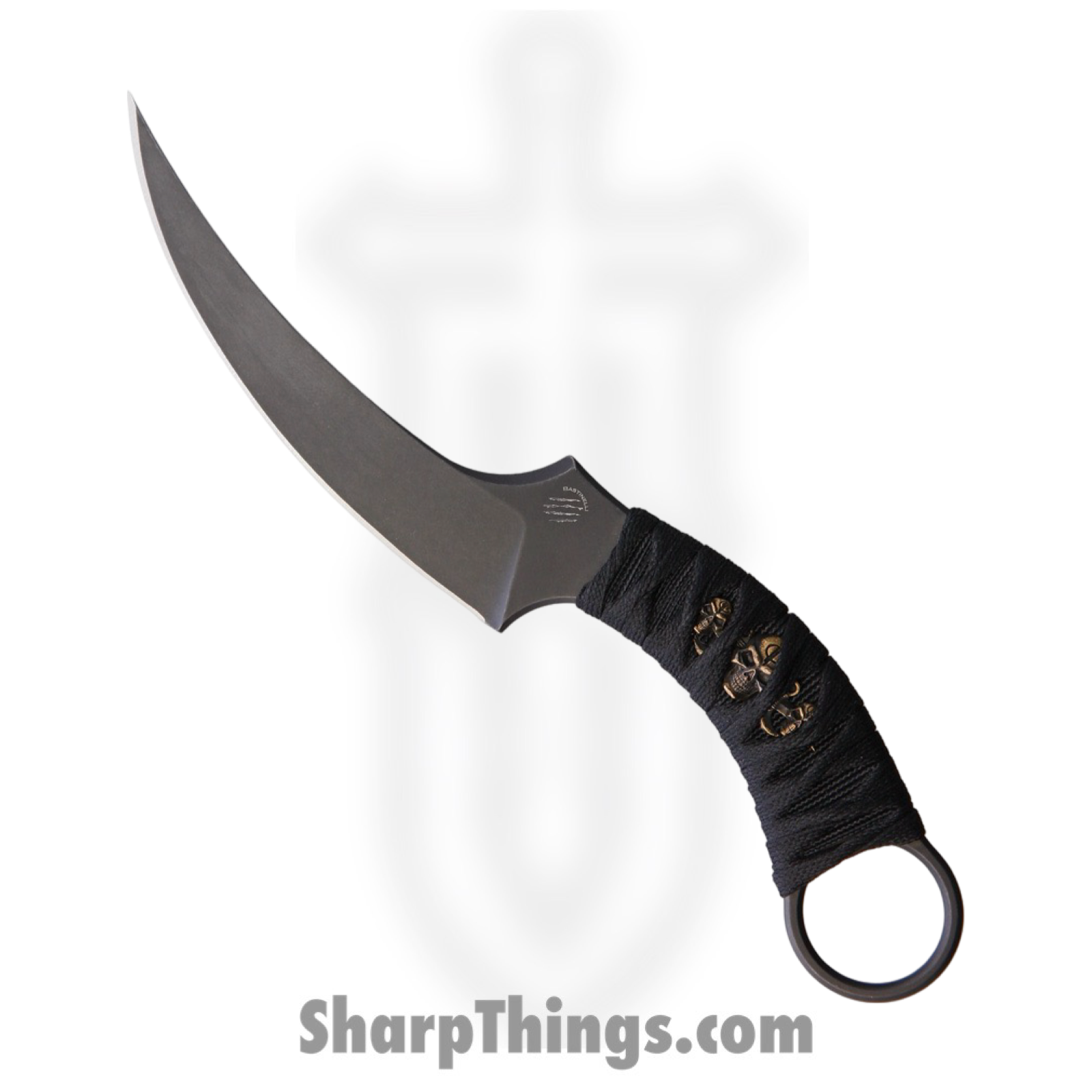 The Bastinelli Creations BAS206M Mako Knife is a high-performance cutting tool designed for precision and durability. With its distinctive curved blade and ergonomic handle, this knife is a versatile choice for both outdoor enthusiasts and tactical professionals alike. Crafted from Bohler N690 stainless steel, the Mako features a 5-inch black stonewash finish blade that retains its sharpness through extended use. The full tang construction ensures strength and balance, making it suitable for heavy-duty tasks. The black cord-wrapped handle provides a secure grip in various weather conditions, while the finger ring allows for enhanced control during intricate maneuvers. The bronze menuki handle accents add a touch of elegance to the knife’s overall design, making it as visually appealing as it is functional. The Mako comes complete with a black Kydex belt sheath for convenient carry and quick access. A zippered storage case is included to protect the knife during transportation and storage, ensuring it remains in optimal condition.