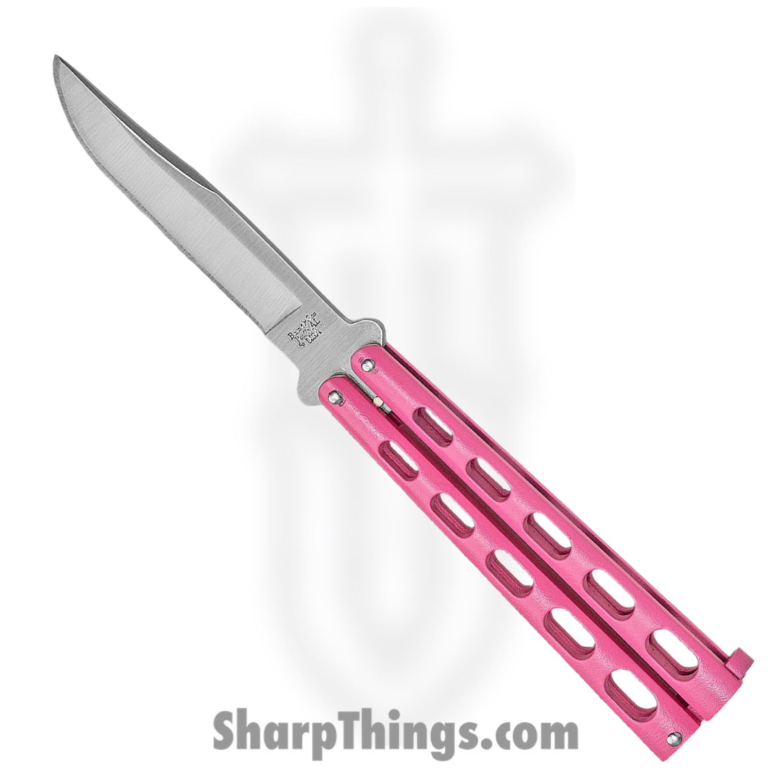 Bear & Son – BC114PK – Butterfly – Balisong – 440 SS Satin Clip Point – Powder Coated Zinc – Pink