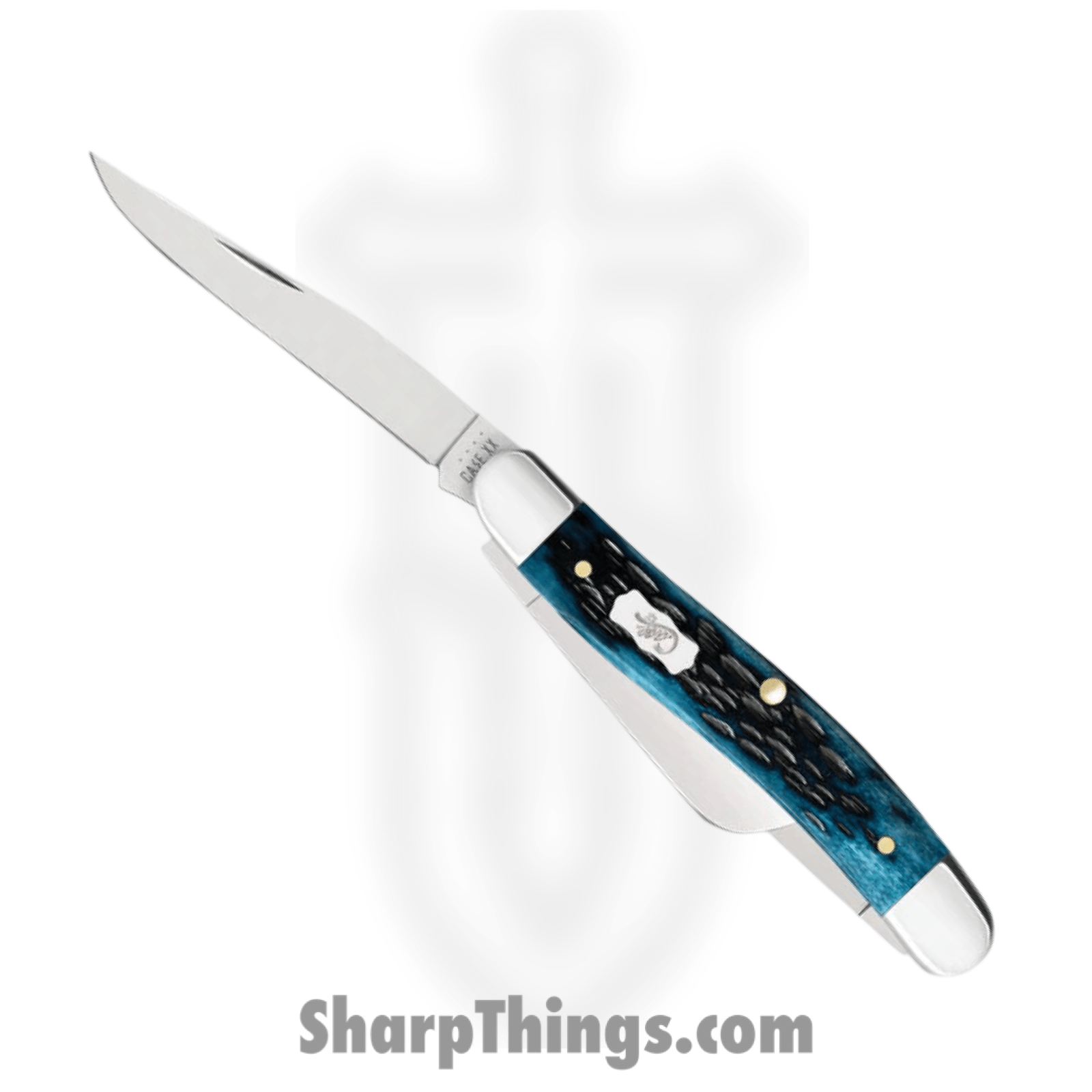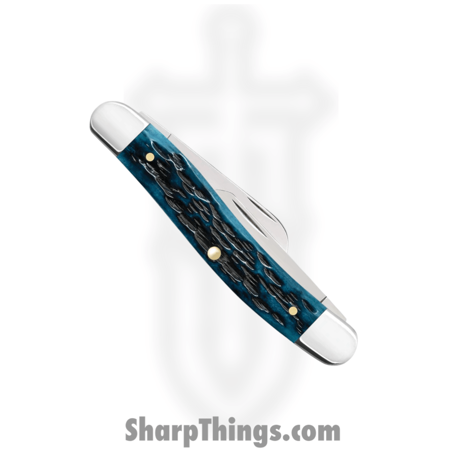 The Case Cutlery CA51851 Medium Stockman is a premium pocket knife that combines elegance, durability, and precision craftsmanship. Its sleek Mediterranean Blue Bone handle, with its distinctive peach-seed jigged texture, offers a secure and comfortable grip, making it a versatile tool for daily use or as a collector’s piece. The mirror-polished Tru-Sharp™ stainless steel blades are renowned for their exceptional edge retention, strength, and resistance to corrosion, ensuring that this knife will serve you reliably for years. The CA51851 Medium Stockman features three distinct blades: a Clip blade, Sheepfoot blade, and Spey blade. The Clip blade, which is a classic design, is perfect for multi-purpose tasks and fine detail work. The Sheepfoot blade is designed for strength at the point, making it ideal for carving and precise cuts. The Spey blade is intended for light cutting tasks, providing excellent control for delicate operations. This knife’s handle is constructed from Mediterranean Blue Bone, which stands out with its vibrant hue and unique texture, adding both visual appeal and a tactile feel. The Case lobed shield is proudly displayed on the handle, highlighting the brand’s signature craftsmanship. Additionally, the nickel silver spacers further enhance the overall appearance, adding a touch of sophistication to the knife. Crafted in Bradford, PA, USA, the CA51851 Medium Stockman is not only a tool of superior functionality but also a piece of American craftsmanship that reflects Case’s longstanding tradition of quality and excellence. Whether for everyday use or as part of a collection, this knife is sure to be a standout.