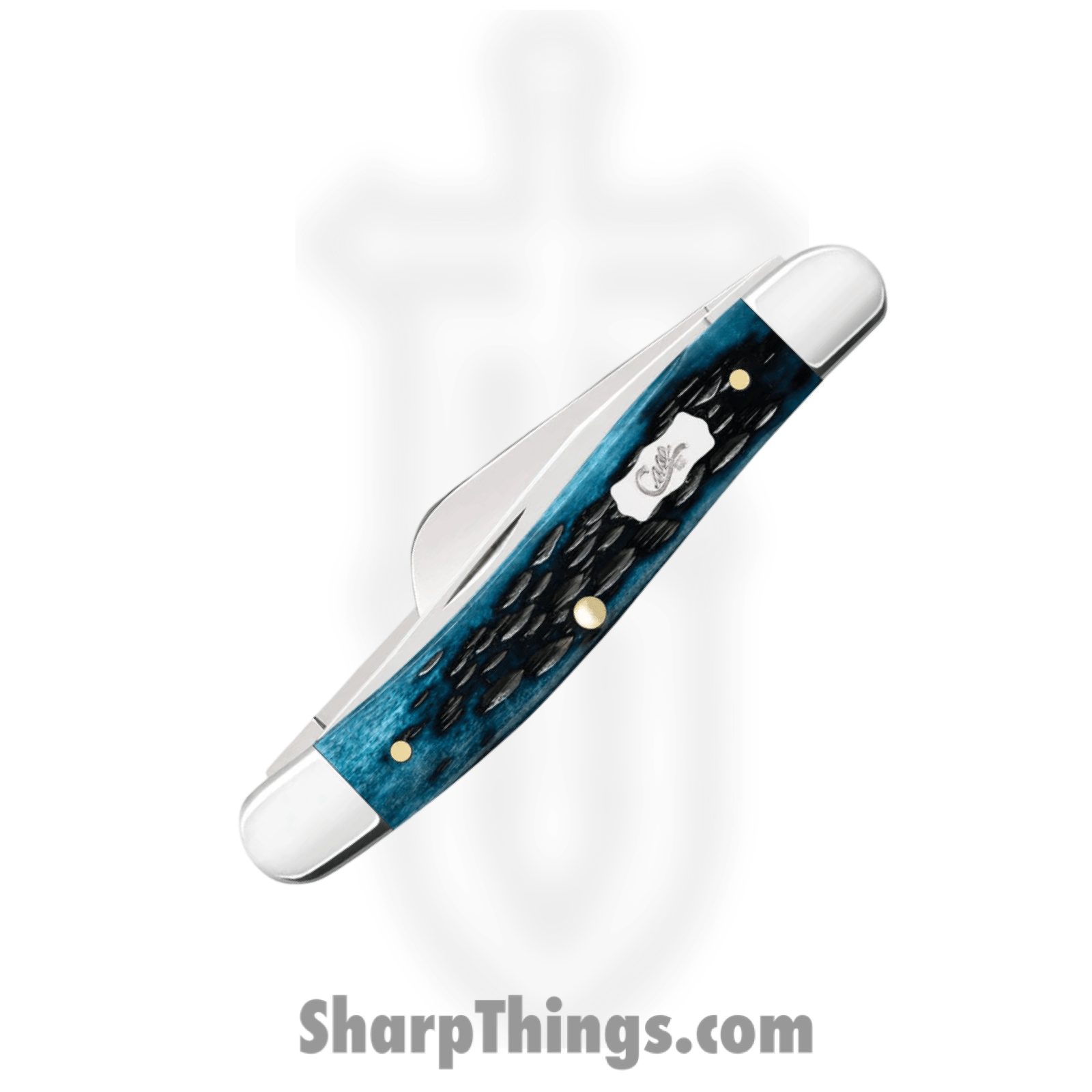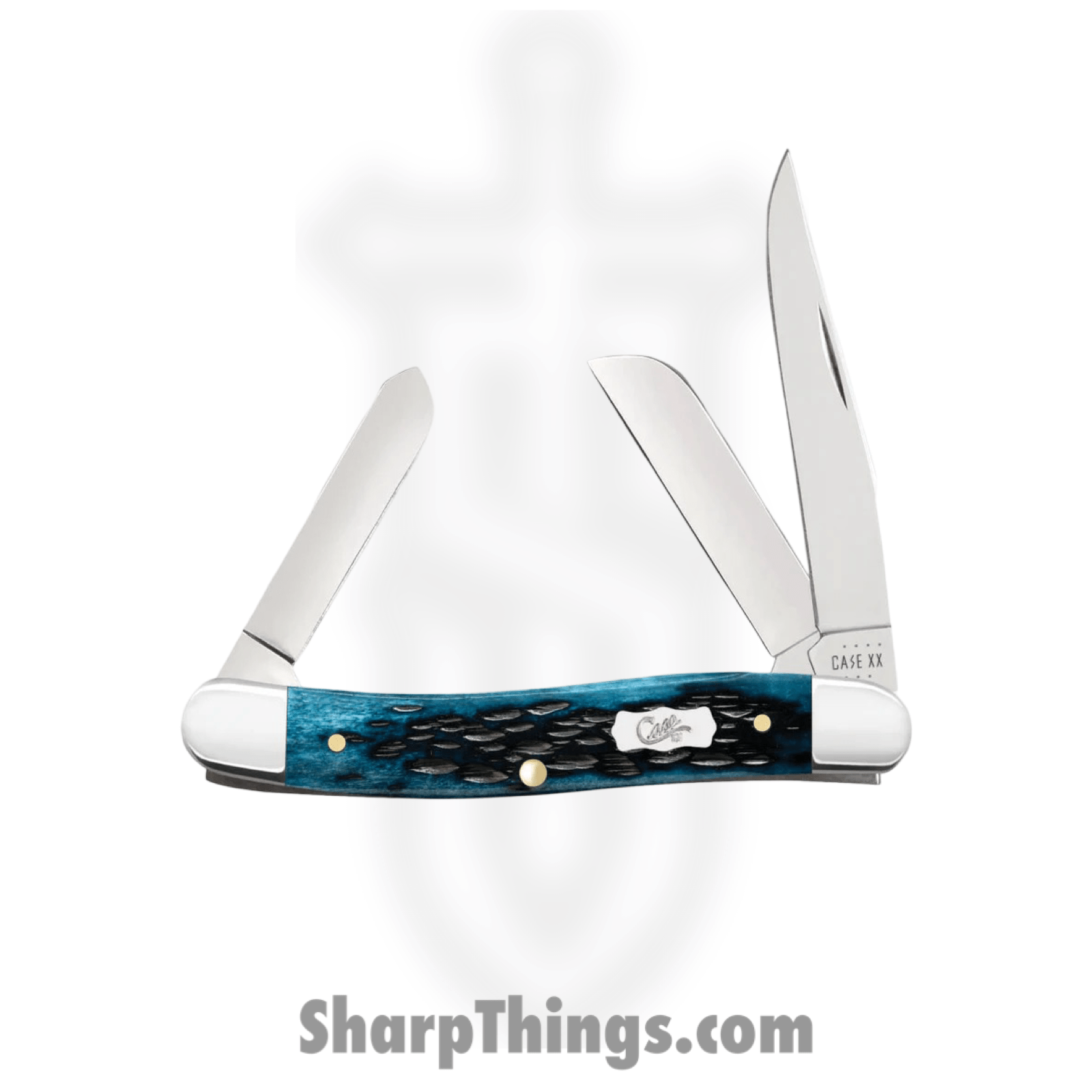 Case Cutlery – CA51851 – Medium Stockman – Folding Knife – Tru-Sharp™ Stainless Polished Clip/Sheepfoot/Spey – Peach Seed Jig Bone – Blue