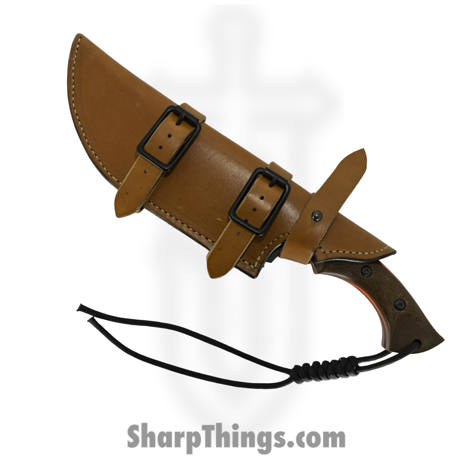 The Cave Blades CaveTrack12 Tracker is a powerful and distinctive fixed blade knife that pays homage to the legendary Tom Brown Tracker design, while pushing the boundaries with rugged Western aesthetics and performance-ready materials. Forged by hand and crafted with attention to every curve and grind, the CaveTrack12 is a no-nonsense survival tool built for bushcraft, combat, field dressing, and extreme outdoor use. Whether you’re a tracker, hunter, survivalist, or collector, this knife is a formidable addition to any kit. Constructed from a solid billet of 1/4″ thick O1 carbon tool steel, this 12″ beast offers both exceptional edge retention and durability under punishing conditions. The blade features a dual-grind configuration: a flat grind at the front for powerful chopping, and a hollow grind at the rear for precision slicing and detailed cutting tasks. A false edge along the spine adds to the aggressive styling without compromising utility or safety. The ergonomic handle is hand-shaped from tough G-10 scales in a bold brown and orange combination, secured with Allen head mechanical fasteners for a secure, no-slip grip. The G-10 material ensures resistance to moisture, temperature fluctuations, and impact—perfect for serious field use. To complete the package, each knife is paired with a handmade leather sheath designed for horizontal (ranger) carry, providing both comfort and accessibility. Whether you’re off-grid, in the field, or displaying it proudly in your collection, the CaveTrack12 brings heritage, toughness, and modern edge to the forefront.