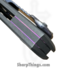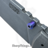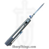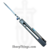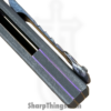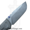 This model boasts a beautifully designed handle made from stonewashed titanium, which not only offers a modern and sleek appearance but also provides a lightweight yet robust construction. The updated sandwich backspacer, adorned with blurple liners, adds a unique touch to the overall design. This knife is completed with Ramon’s signature titanium skull pocket clip, specifically crafted for this one-off knife and positioned for tip-up carry. This 1 of 1 piece also sports Ramon’s signature and “1 of 1” on the inside of the handle.