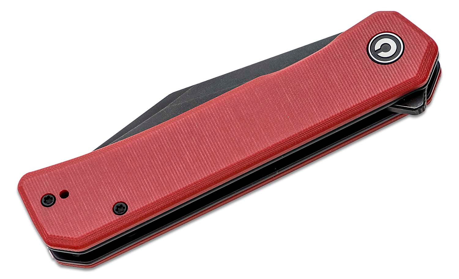 Civivi Relic Flipper Knife 3.48″ Nitro-V Black Stonewashed Clip Point Blade, Burgundy G10 Handles