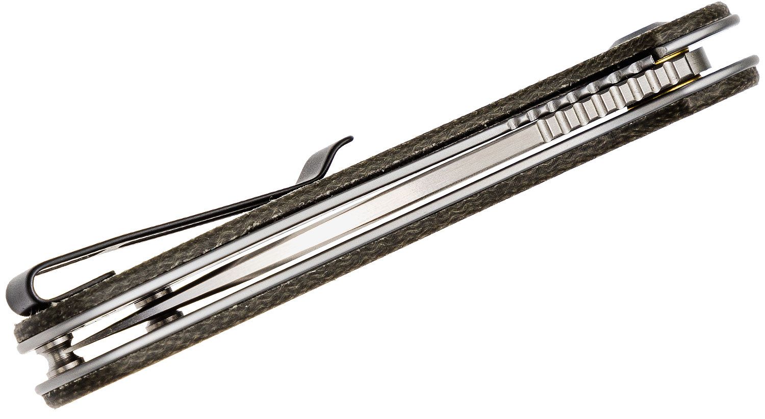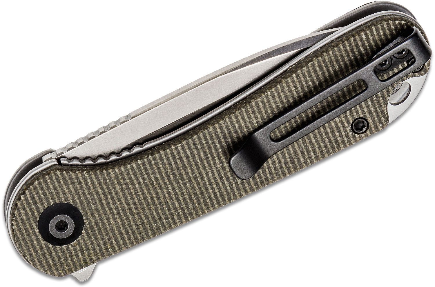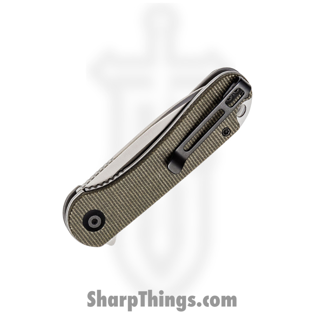 The C907 Elementum is a no-frills, straight down to business utility folding knife. It’s a bit too compact to be used for self-defense but many of its design features pave the way for it to be an excellent EDC blade. These include the thin, ergonomic handle that provides no hots spots during use and a very simple utilitarian design. The drop point blade transitions into an ergonomic handle that seems to melt into the hand. The dark green Micarta scales make for a great aesthetic while the deep carry clip keeps the knife securely attached to your pocket. The Elementum was designed for and is capable of all-day use and at this price point, we highly recommend you put it through its paces.