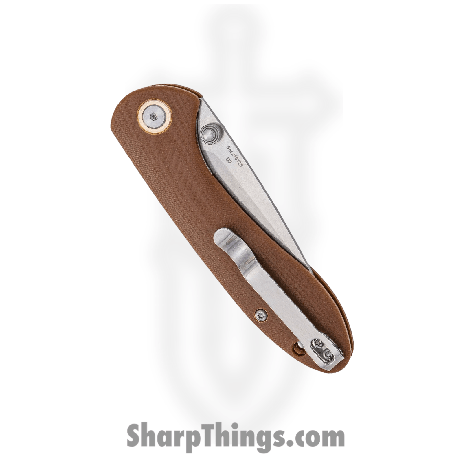 The CJRB Small Feldspar (model J1912SBNC) embodies the essence of ergonomic design, prioritizing comfort and efficiency for everyday carry (EDC) needs. Its compact profile makes it highly suitable for on-the-go utility tasks, effortlessly fitting in the pocket and always within easy reach. The knife’s well-thought-out design emphasizes user-friendly access and reliability, ideal for those who want a dependable tool without excess bulk. The blade of the Small Feldspar is crafted from durable D2 tool steel, offering an excellent balance of edge retention, strength, and durability. The stonewash finish gives it a subtle, rugged look while reducing visible wear. The handle is constructed from contoured CNC-machined brown G10, providing a comfortable, textured grip that is both secure and lightweight. Its ergonomic contours enhance grip comfort, allowing prolonged use without discomfort. The liner lock mechanism is easy to engage and provides reliable lock-up, while ceramic bearings in the pivot ensure smooth, swift blade deployment.
