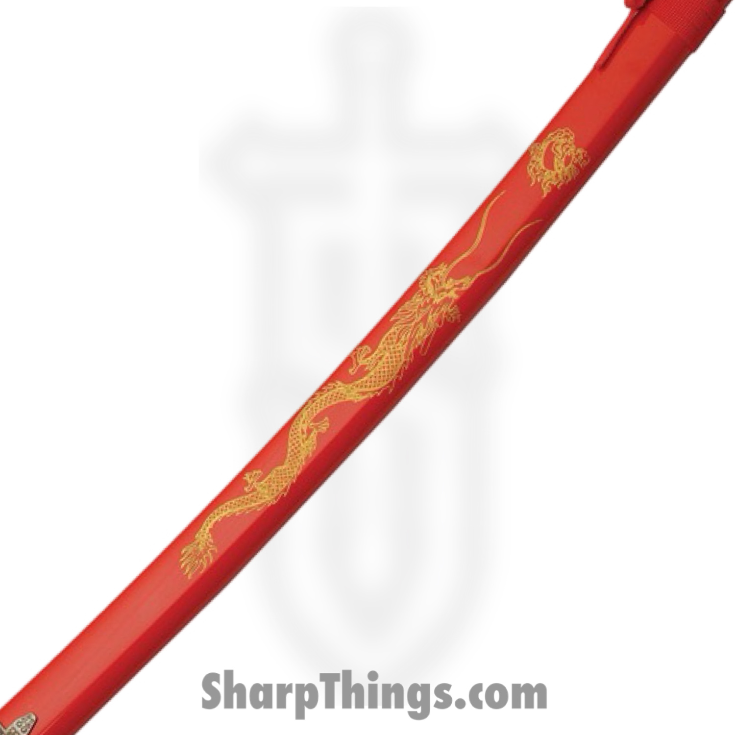 CMP – CN927030RD – Gold Dragon Samurai – Fixed Blade Knife – Carbon Steel Satin – Cord Wrapped – Red