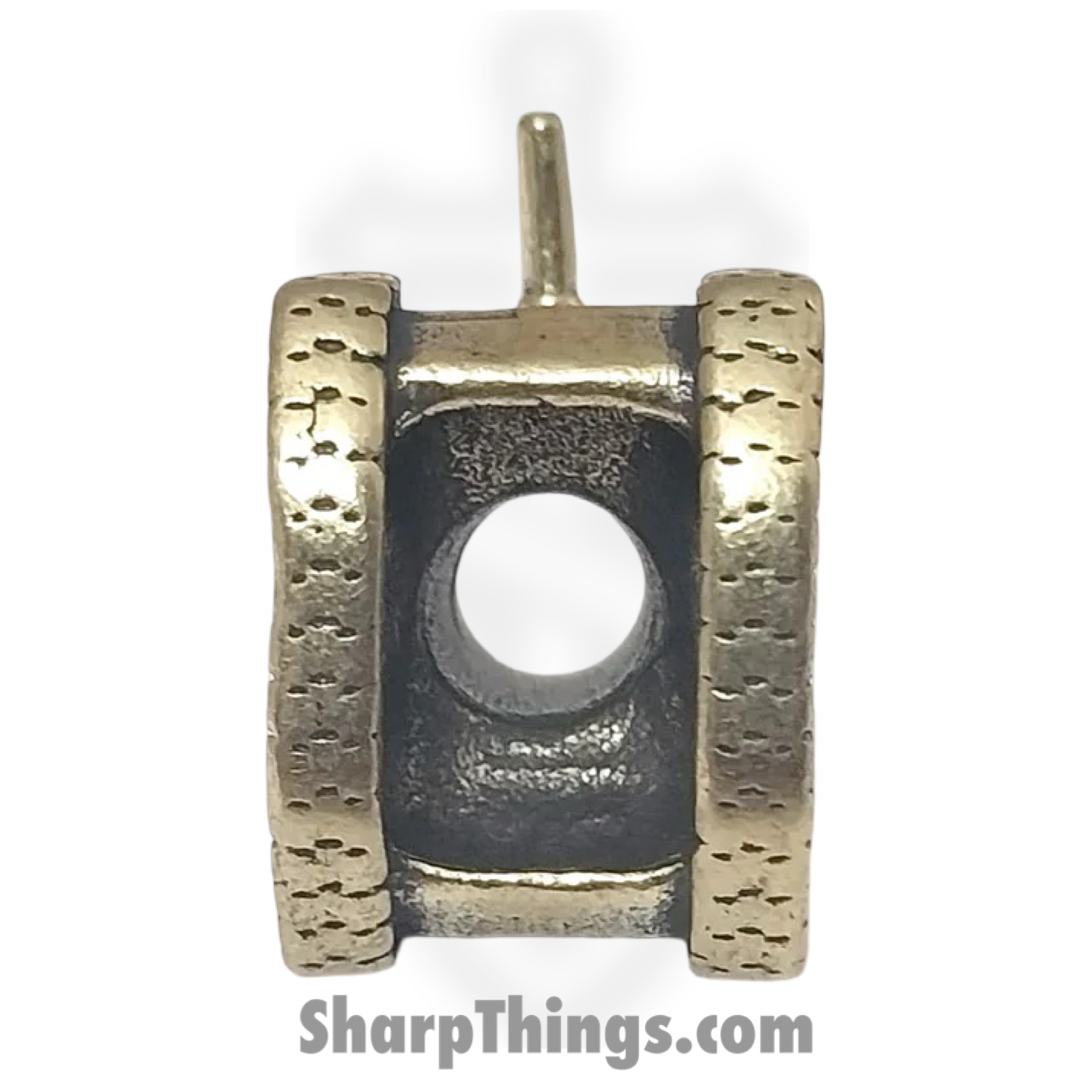 Featuring a single .22″ diameter bore straight through the center, it’s perfectly sized to accommodate one strand of standard 550 paracord—or smaller—making it ideal for lanyards, zipper pulls, keychains, and knife carry upgrades. The antiqued finish not only adds a vintage military vibe but also masks wear over time, giving it a tougher, lived-in look the more you use it.