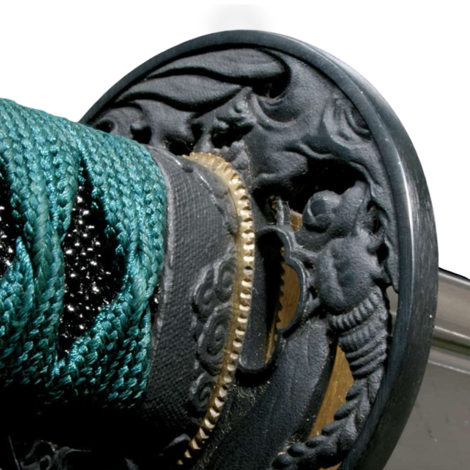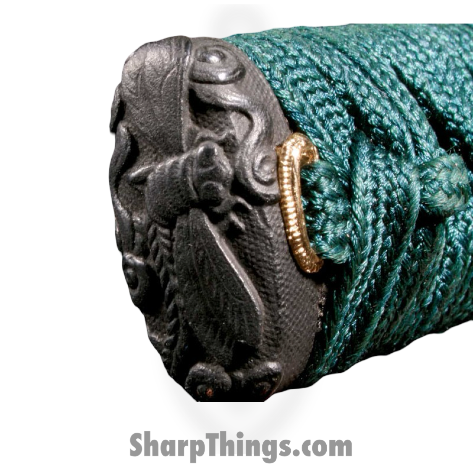 Handle: 11.50″ Samé (Rayskin) Handle with Teal Green Silk Braid Cord & Brass Menuki