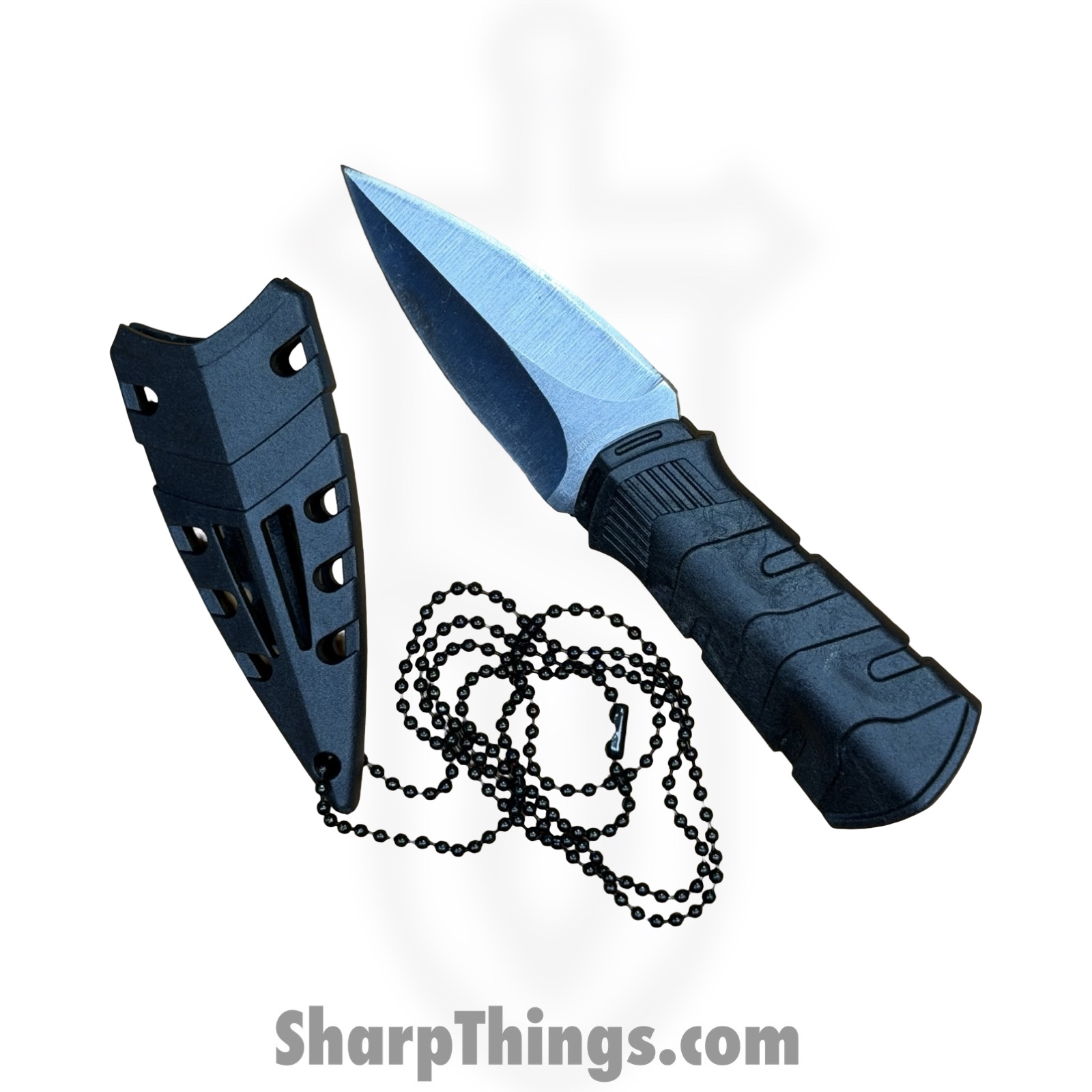 Neck Knife – Fixed Blade Knife – Stainless Satin Dagger – Nylon – Black