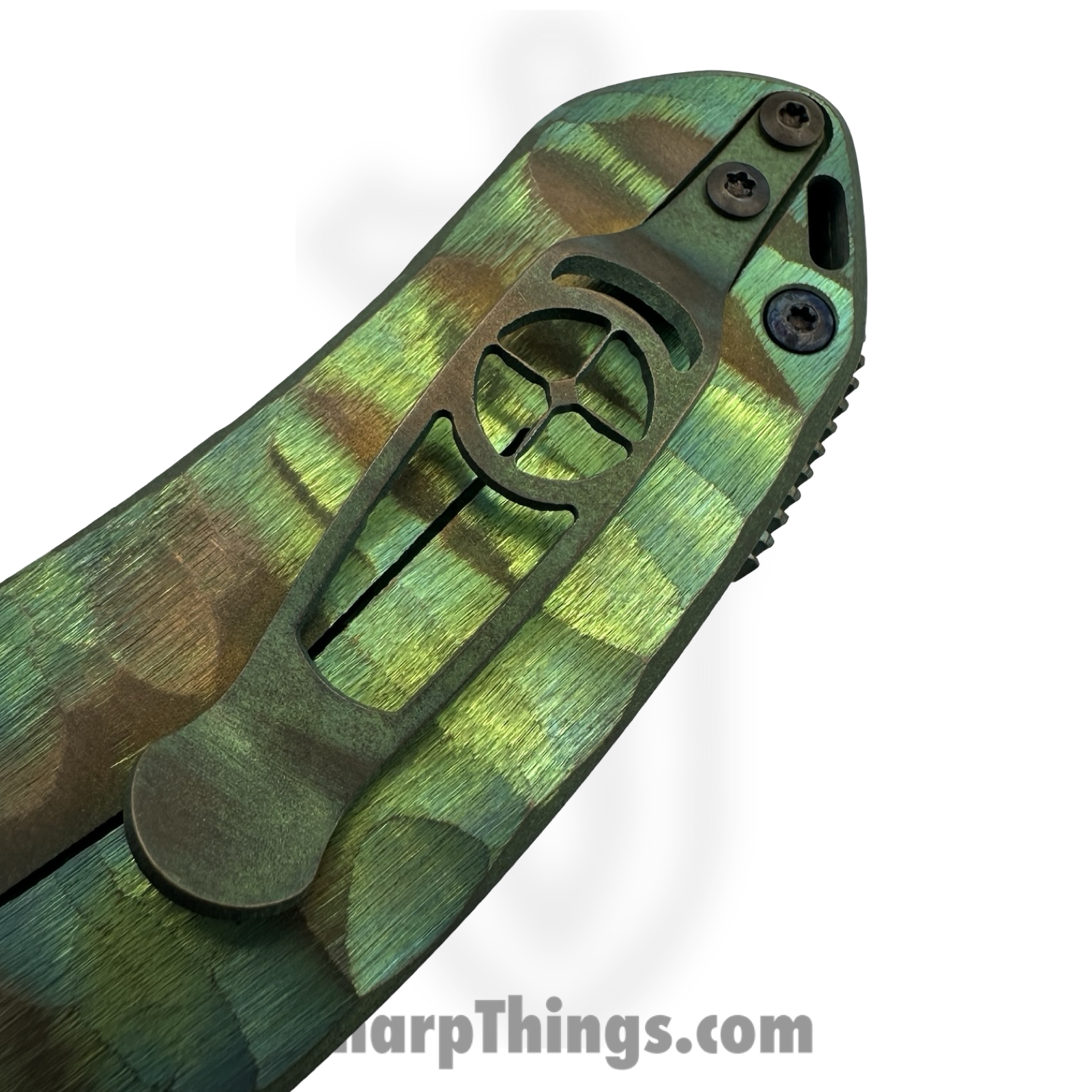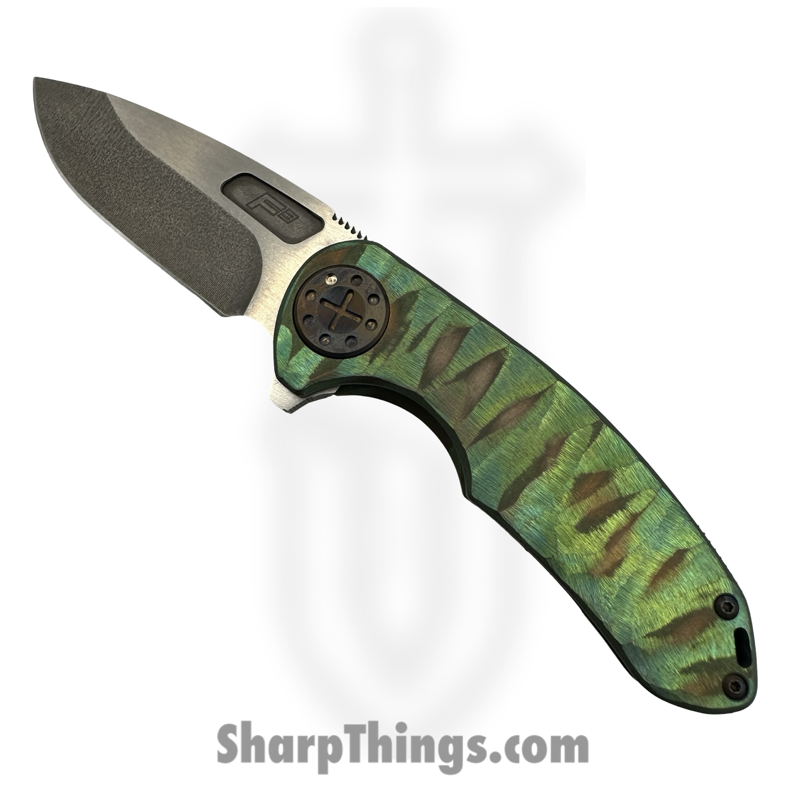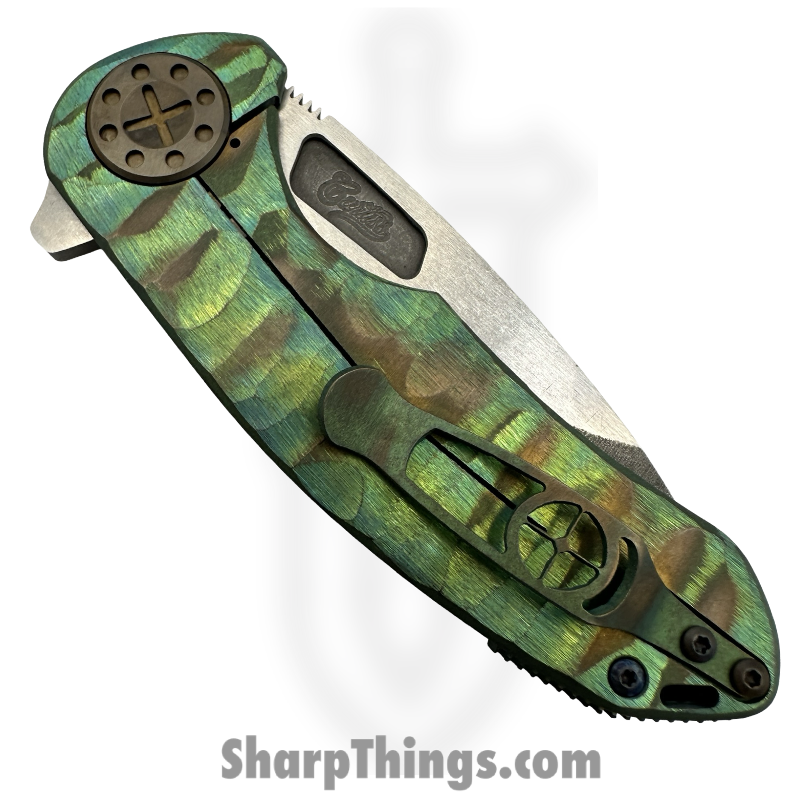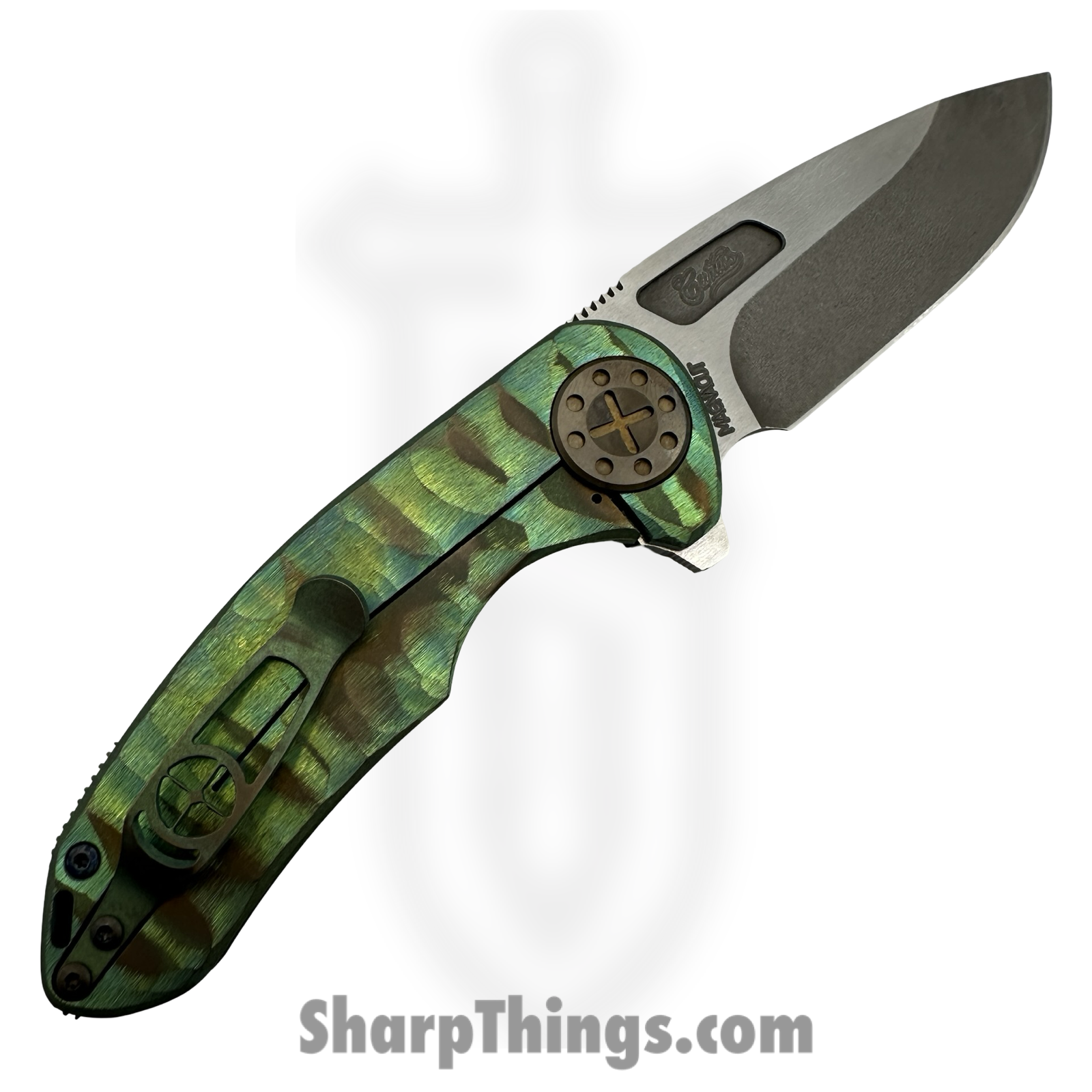Paired with a rugged green titanium frame, the knife sports the unmistakable Curtiss S.P.O.T. Pivot system, offering a uniquely tuned action that’s buttery smooth and reliable under pressure. This is a hard-use tool for serious users who also appreciate elite craftsmanship.
