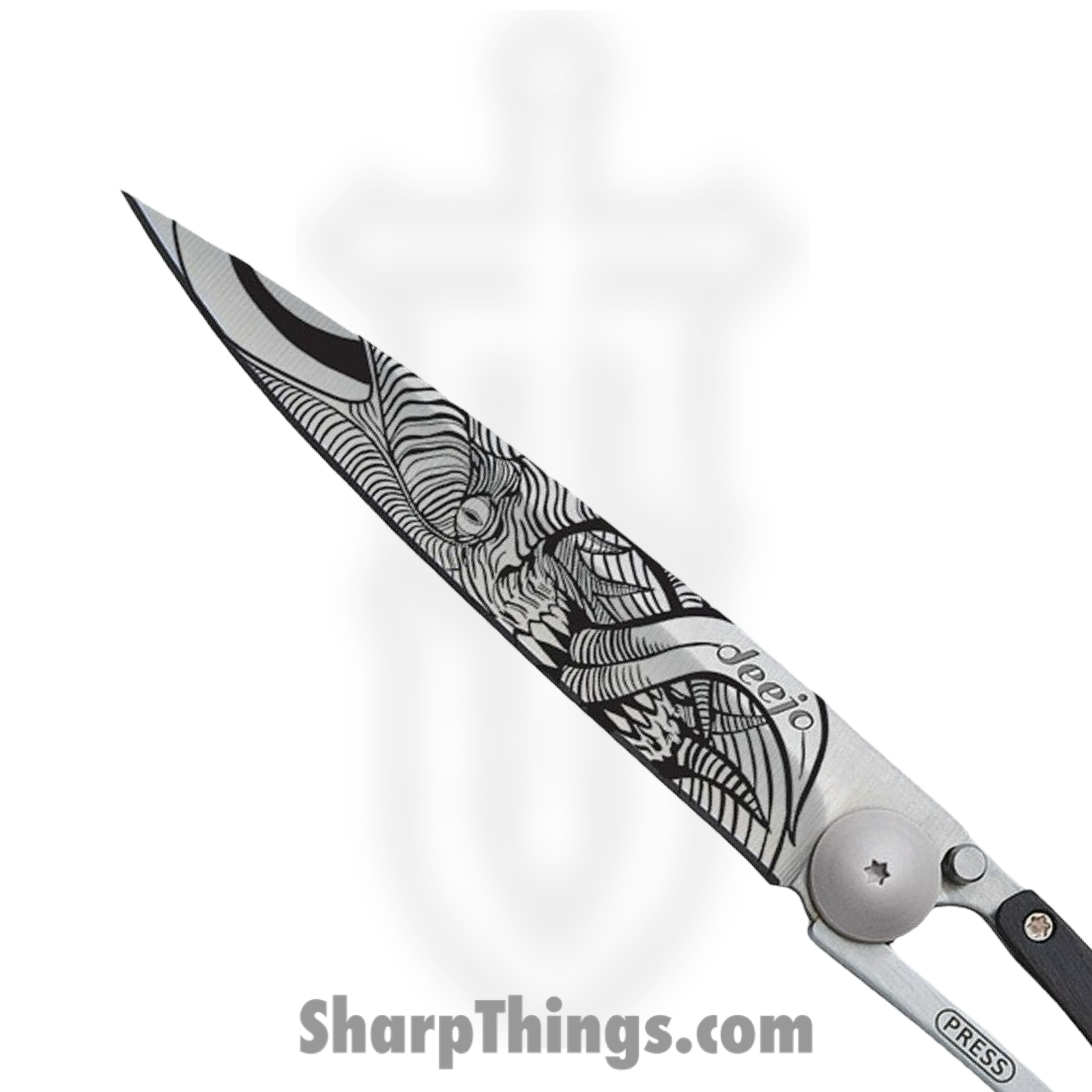 Fusing artful expression with exceptional utility, the Deejo DEE1CB028 Tattoo “Demon” model stands as a masterpiece of lightweight design and craftsmanship. Weighing just 37 grams, this pocket knife brings the strength and precision of a full-sized blade in an ultra-light, highly portable profile. Deejo’s Tattoo series is celebrated for its bold aesthetics and minimalist engineering, and the “Demon” design etched on the blade exemplifies the spirit of this collection—edgy, refined, and fiercely personal. The 420 stainless steel blade is laser-engraved with the “Demon” motif and finished with a matte treatment, giving it a modern, non-reflective surface ideal for both collectors and practical users. This knife features a chisel grind for effortless slicing tasks and a secure frame lock system for dependable handling. The handle is fitted with an ebony wood inlay, adding warmth and tactile balance to the stainless steel frame. Renowned for its deep, rich black hue, ebony wood is not only aesthetically prized but also naturally resistant to humidity, making it one of the most durable and luxurious materials in fine cutlery. With its slim profile, featherweight construction, and integrated belt clip, the Deejo Tattoo Demon is the perfect everyday companion—designed to go wherever life takes you while making a bold, unmistakable statement.