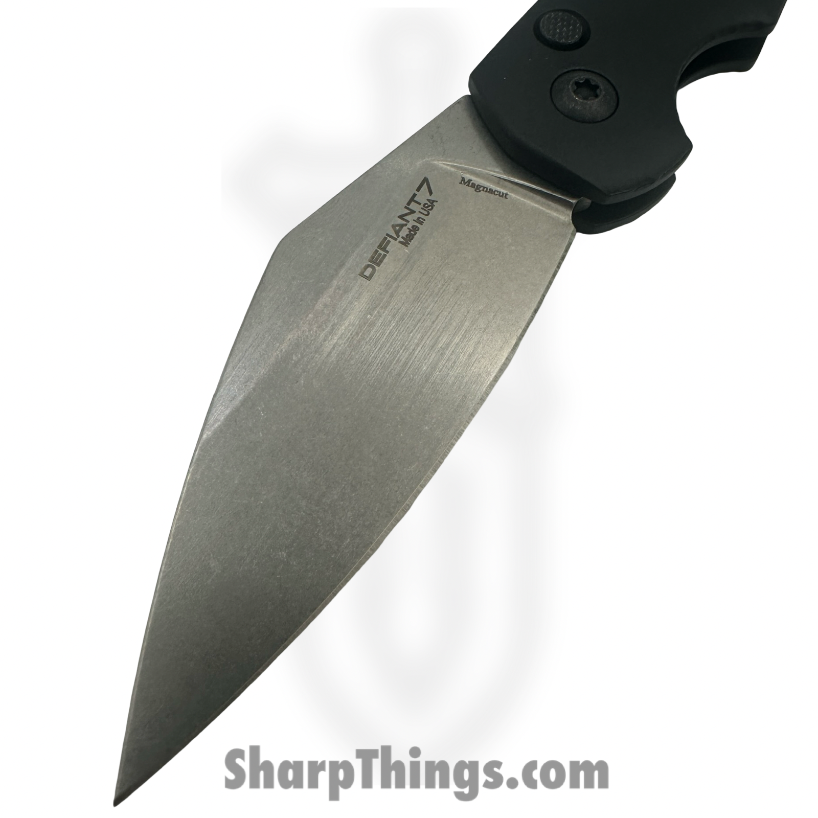 The Defiant 7 Seax Auto is a fierce modern reimagining of an ancient blade profile. Featuring a bold, straight-edge Seax-style blade ground from CPM MagnaCut, this automatic deploys with ferocity and locks up tight. The MagnaCut steel offers elite performance in edge retention, toughness, and corrosion resistance—backed by the credibility of one of the most innovative steels in the game.
