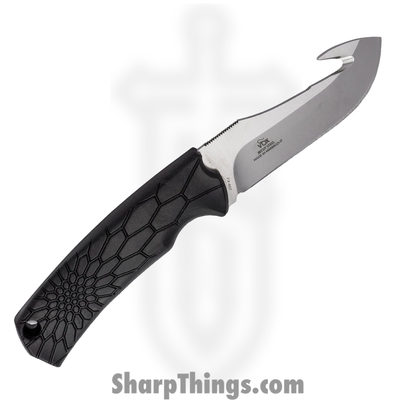 Fox Knives – FOX607 – Core Skinner – Fixed Blade Knife – Becut Steel Satin Drop Point with Guthook – Polypropylene – Black