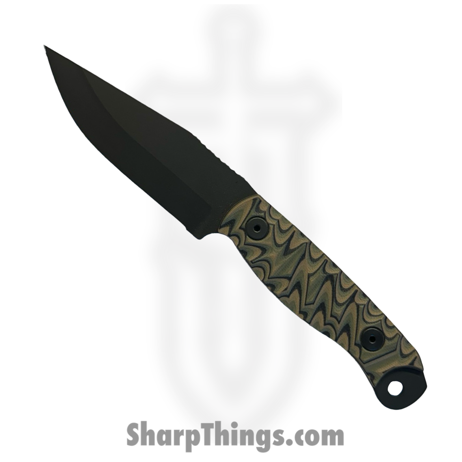 Crow Scalper – Fixed Blade Knife – S45VN Armor Black Cerakote Drop Point – G10 Chaos Grip – Camo