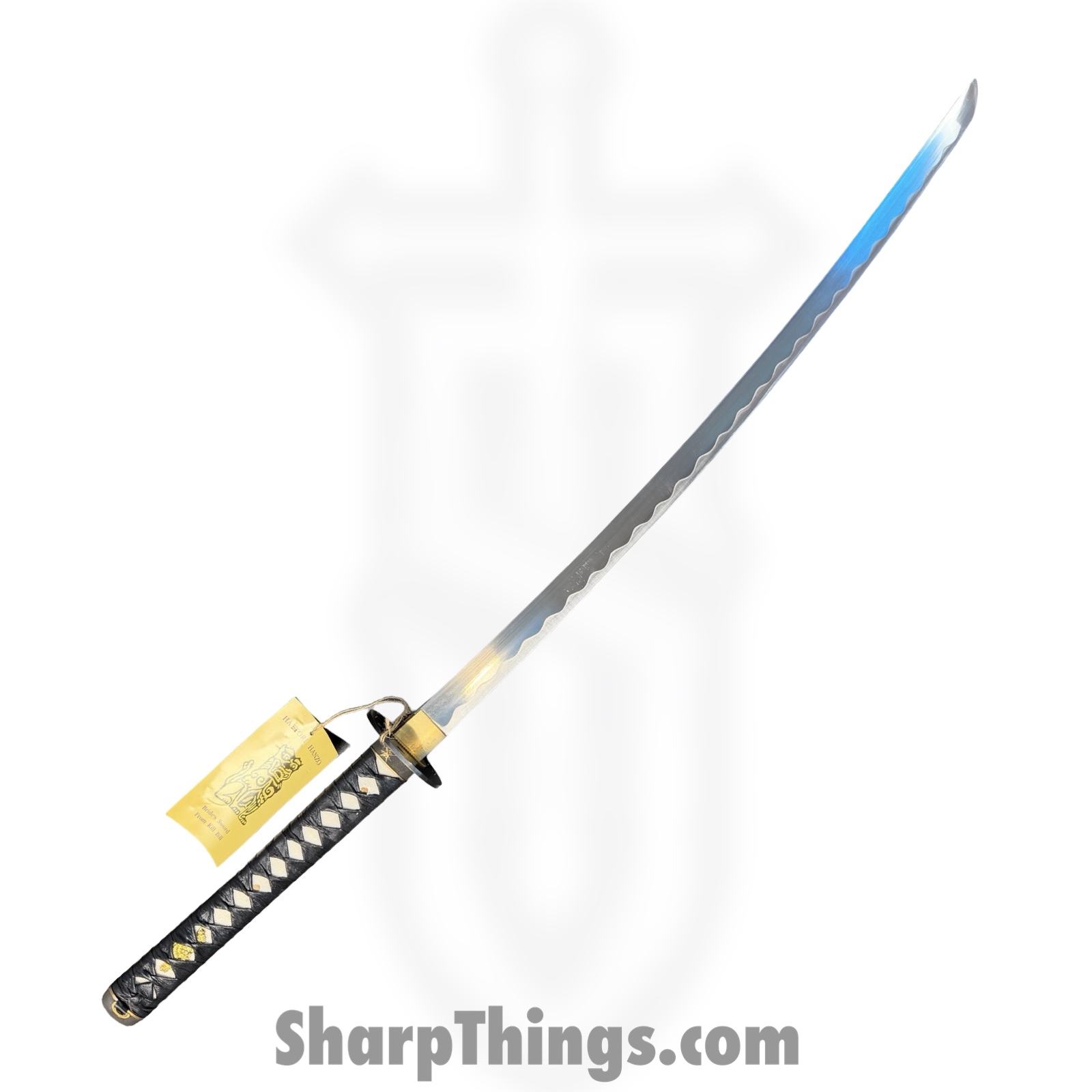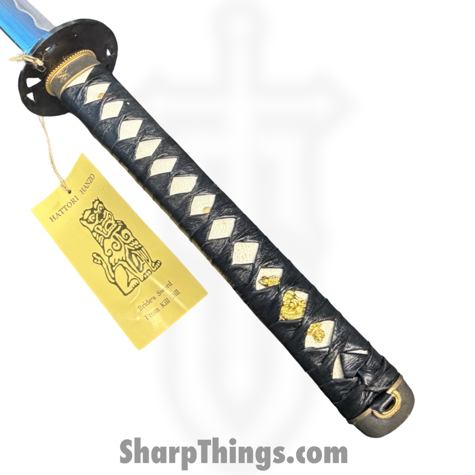 The handle is tightly wrapped in black cord over a traditional-style base, ensuring a secure feel whether displayed or swung through kata movements. The tsuba is shaped and finished to stay true to the Kill Bill aesthetic, and the saya includes the appropriate black lacquered finish with matching profile. This combination of practical construction and cinematic styling makes the F-320-BR-Z an excellent choice for dedicated collectors, display, costume accuracy, and martial arts demonstrations.