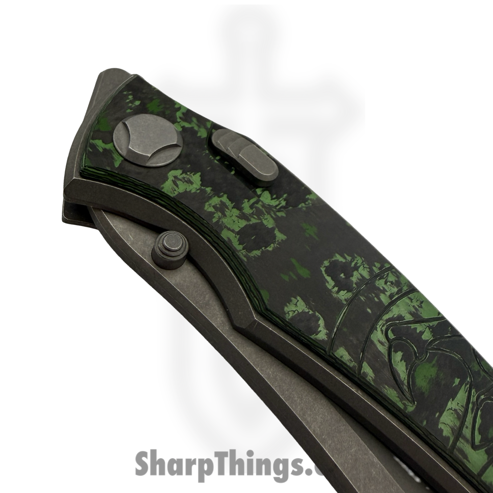 The handle options feature some of the most sought-after Fat Carbon finishes on the planet—including Jungle Wear, Lava Flow, Uni Copper, Mars Valley, and Black Dunes—each paired with titanium liners and hardware for lightweight strength. The entire knife is finished with a combination of Zirblast and tumbled textures, giving it a distinctive, high-end feel in hand.