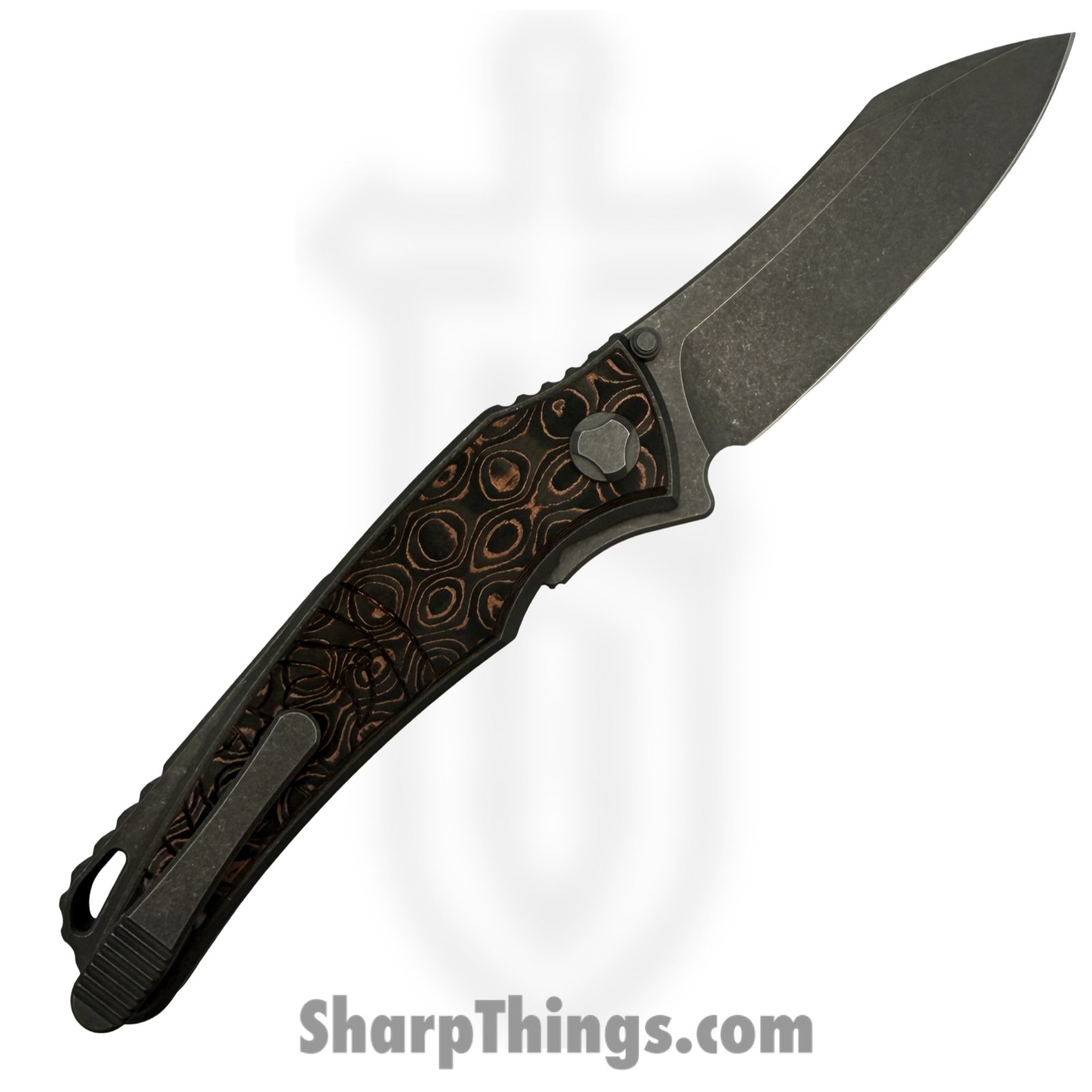 The handle options feature some of the most sought-after Fat Carbon finishes on the planet—including Jungle Wear, Lava Flow, Uni Copper, Mars Valley, and Black Dunes—each paired with titanium liners and hardware for lightweight strength. The entire knife is finished with a combination of Zirblast and tumbled textures, giving it a distinctive, high-end feel in hand.