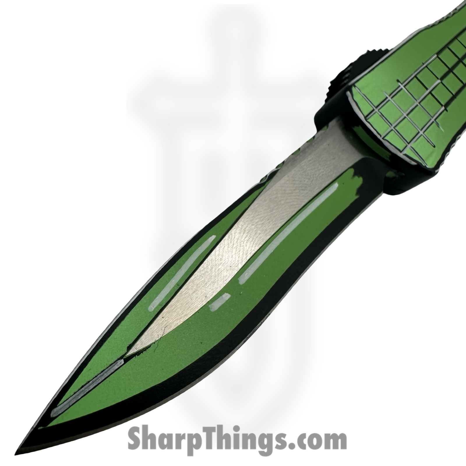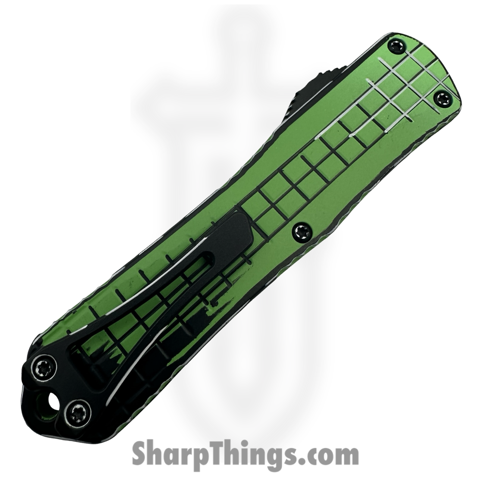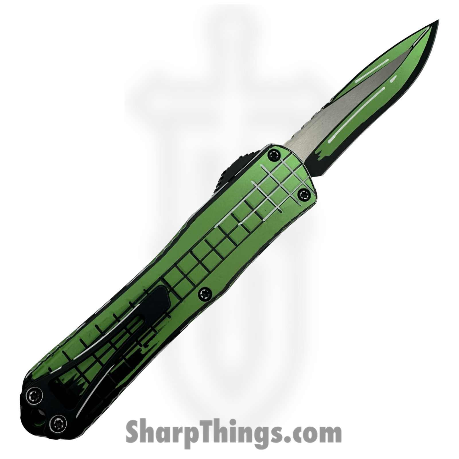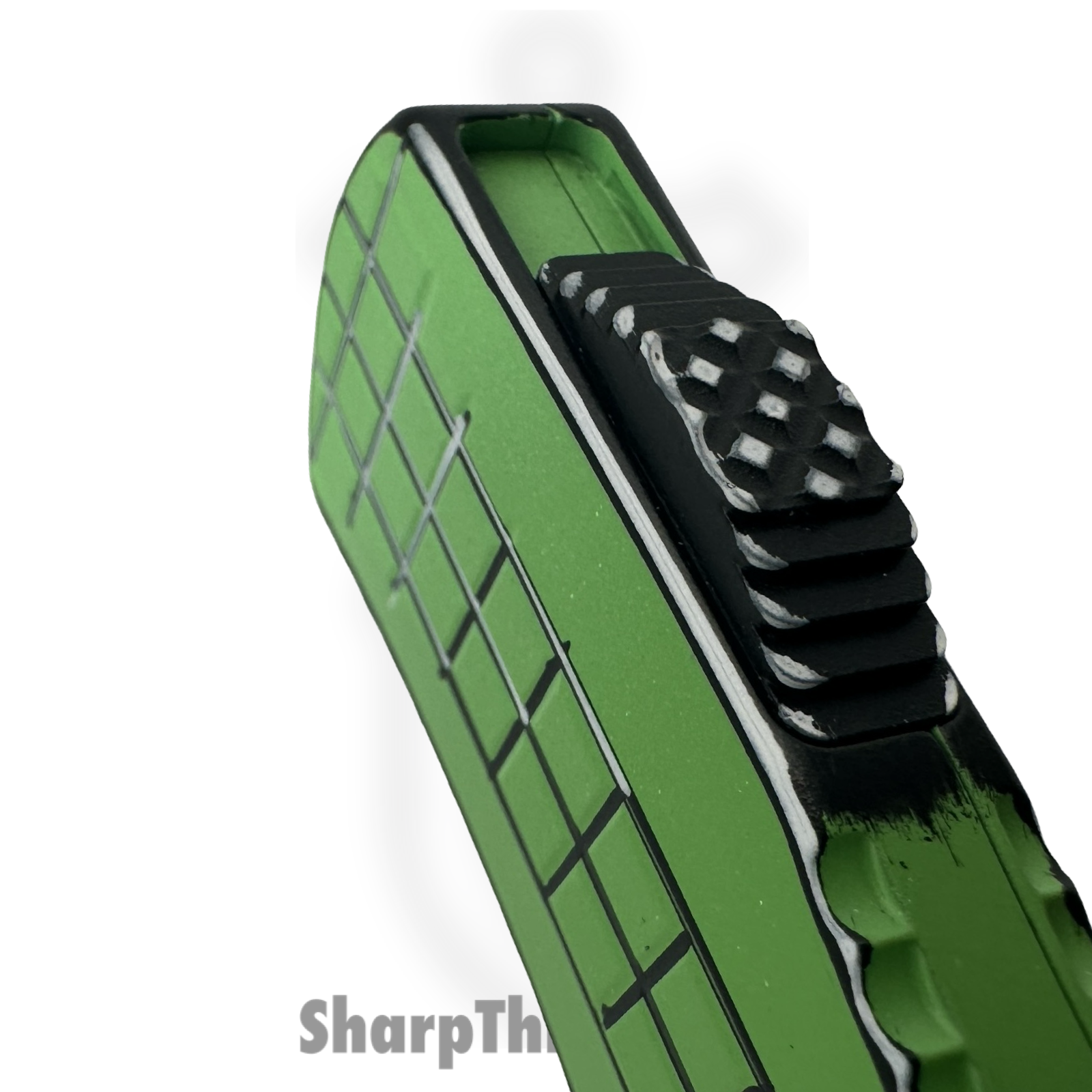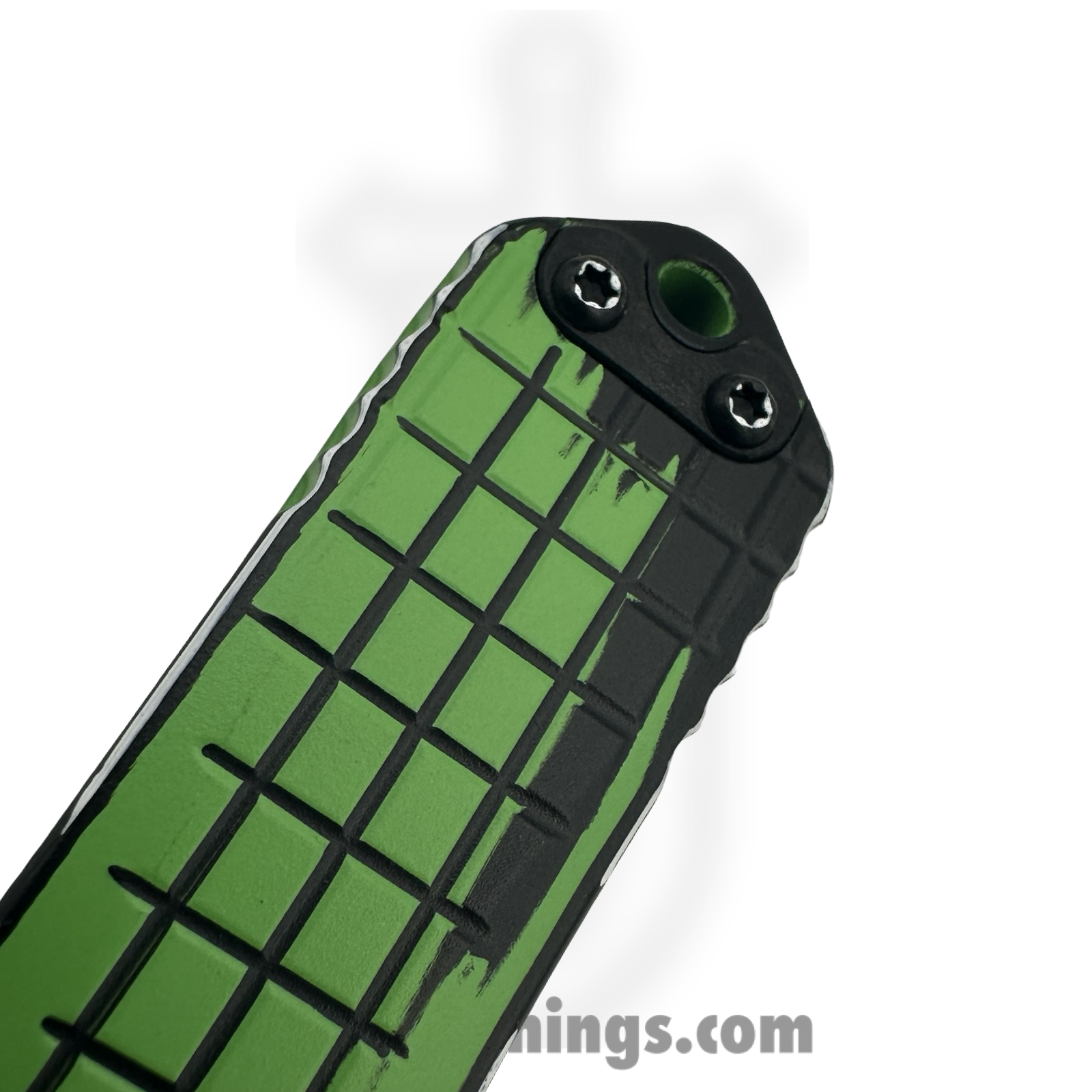 Manticore-E – OTF Auto – CPM MagnaCut Coated Recurve – Toxic Green Cel Shade Grenade Grip Aluminum