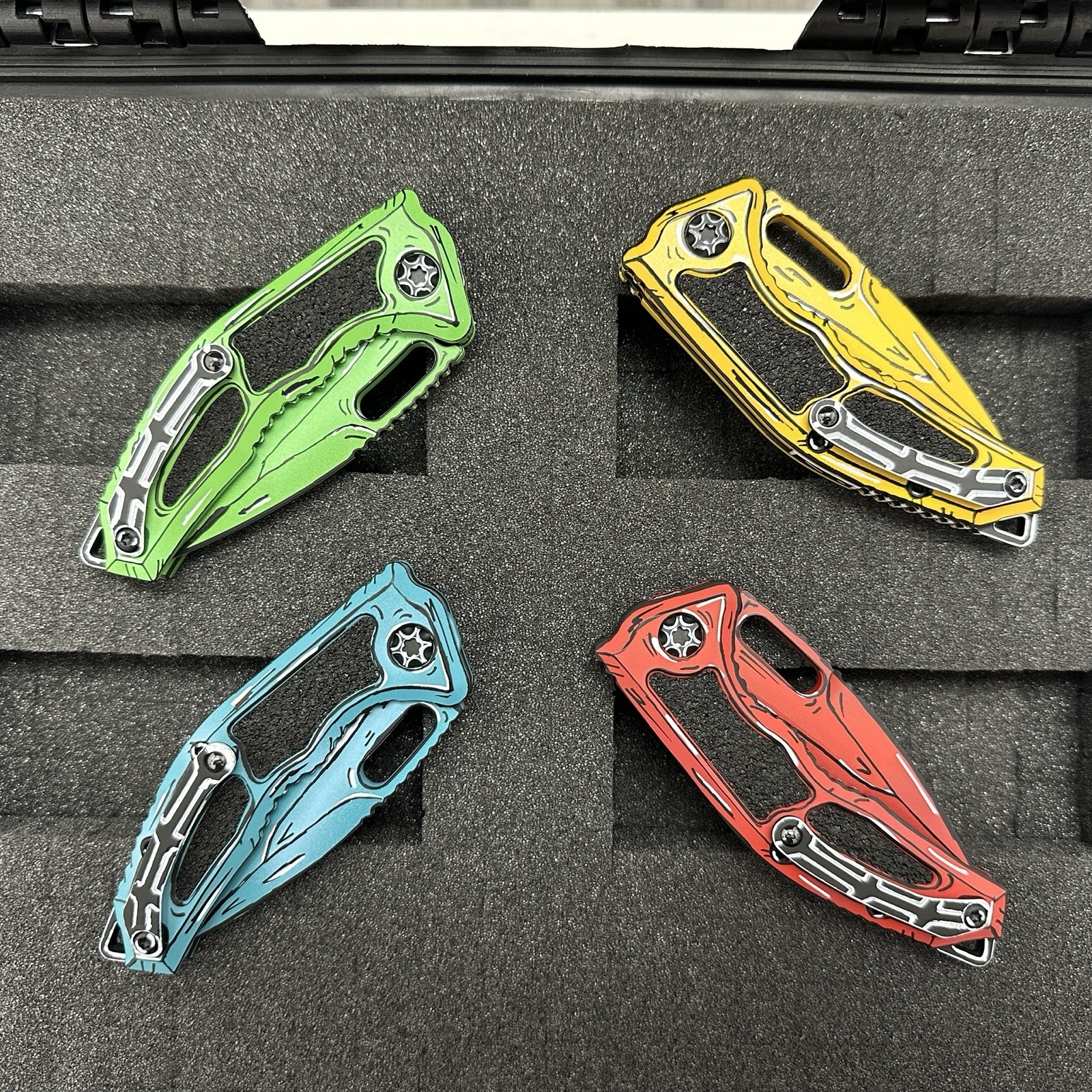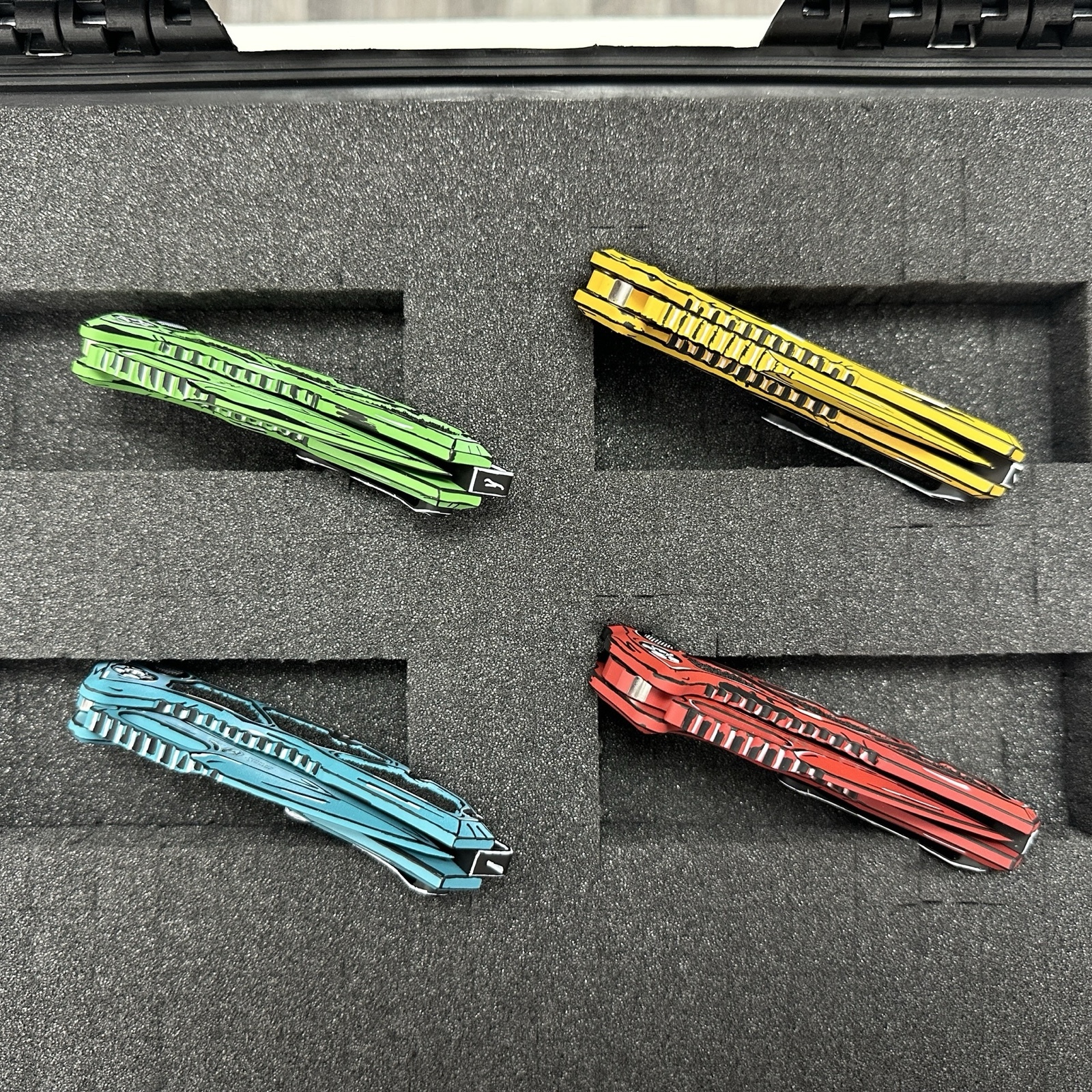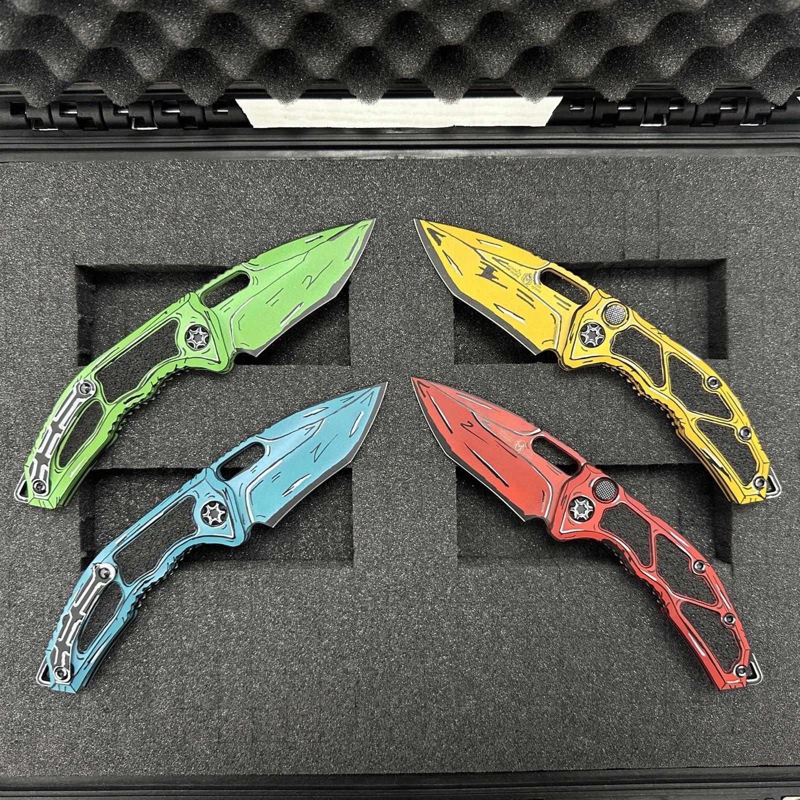 Cel Shaded Medusa 4pc Box Set – Automatic Knife – MagnaCut – Recurve Tanto – Red, Turq, Yellow, Green