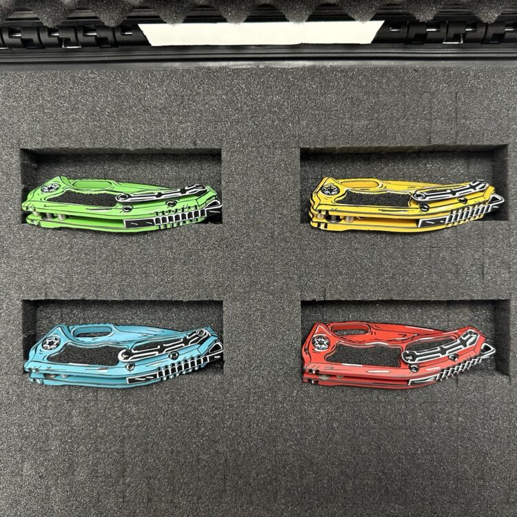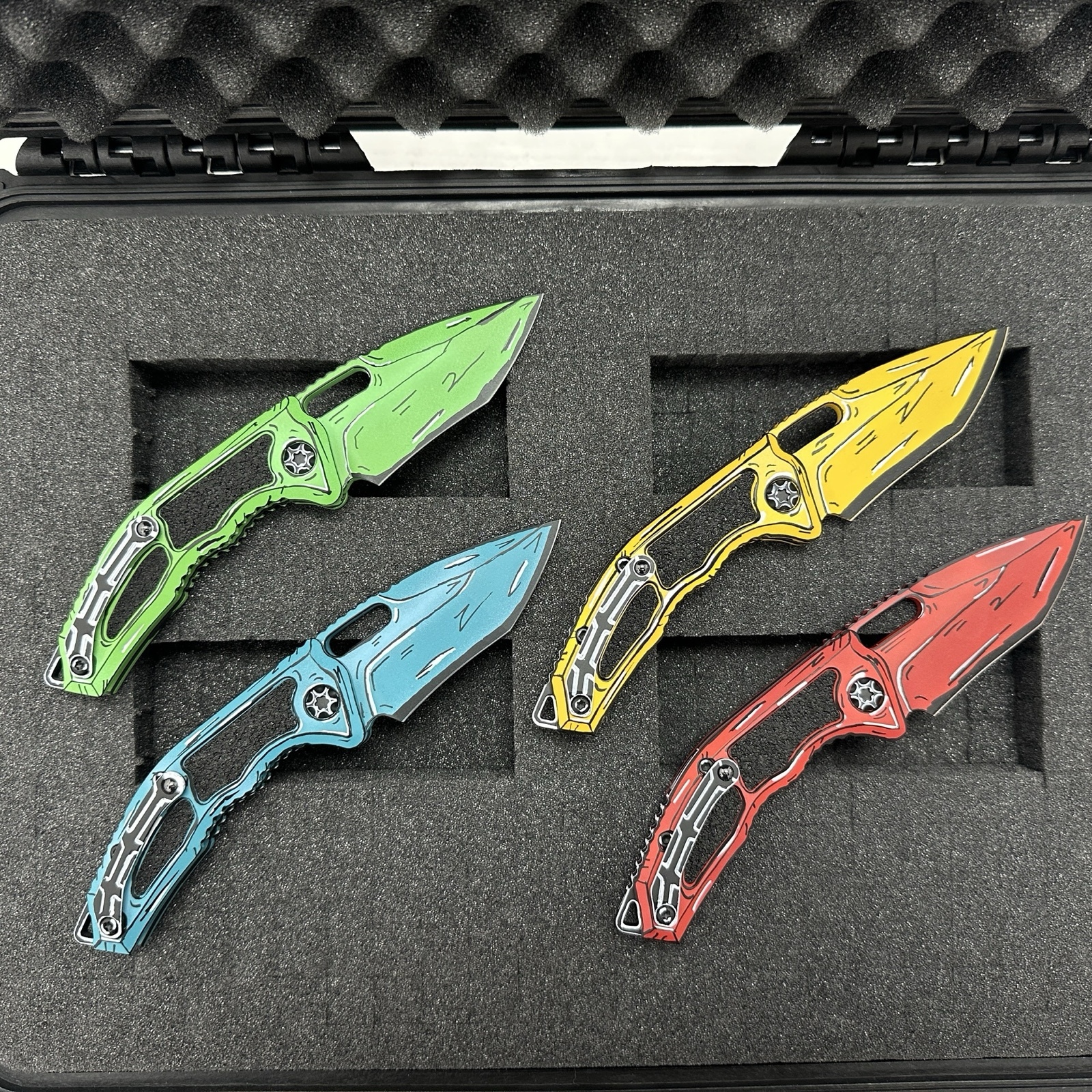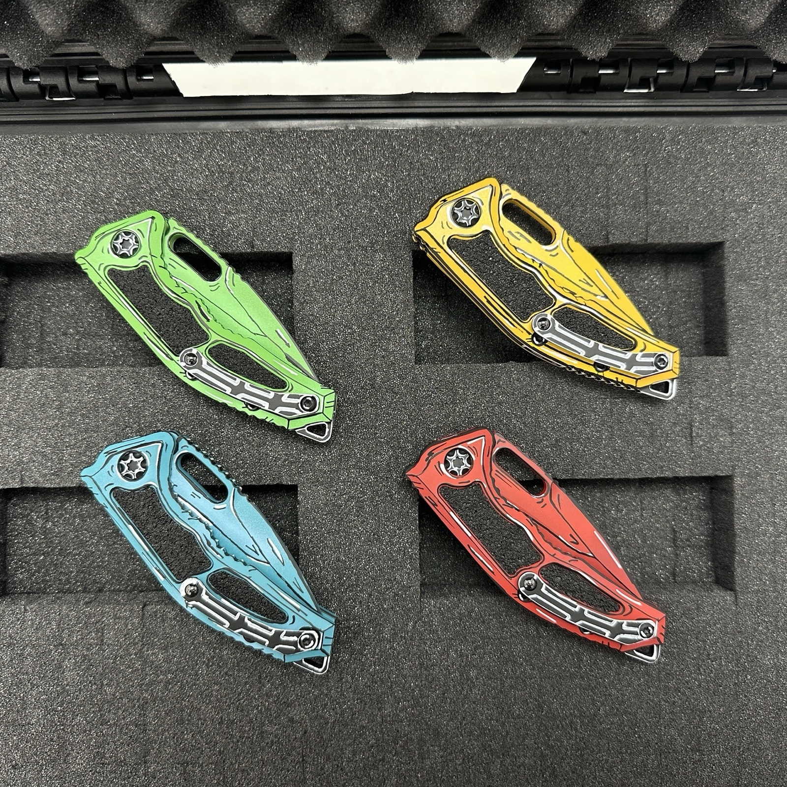 Cel Shaded Medusa 4pc Box Set – Automatic Knife – MagnaCut – Recurve Tanto – Red, Turq, Yellow, Green