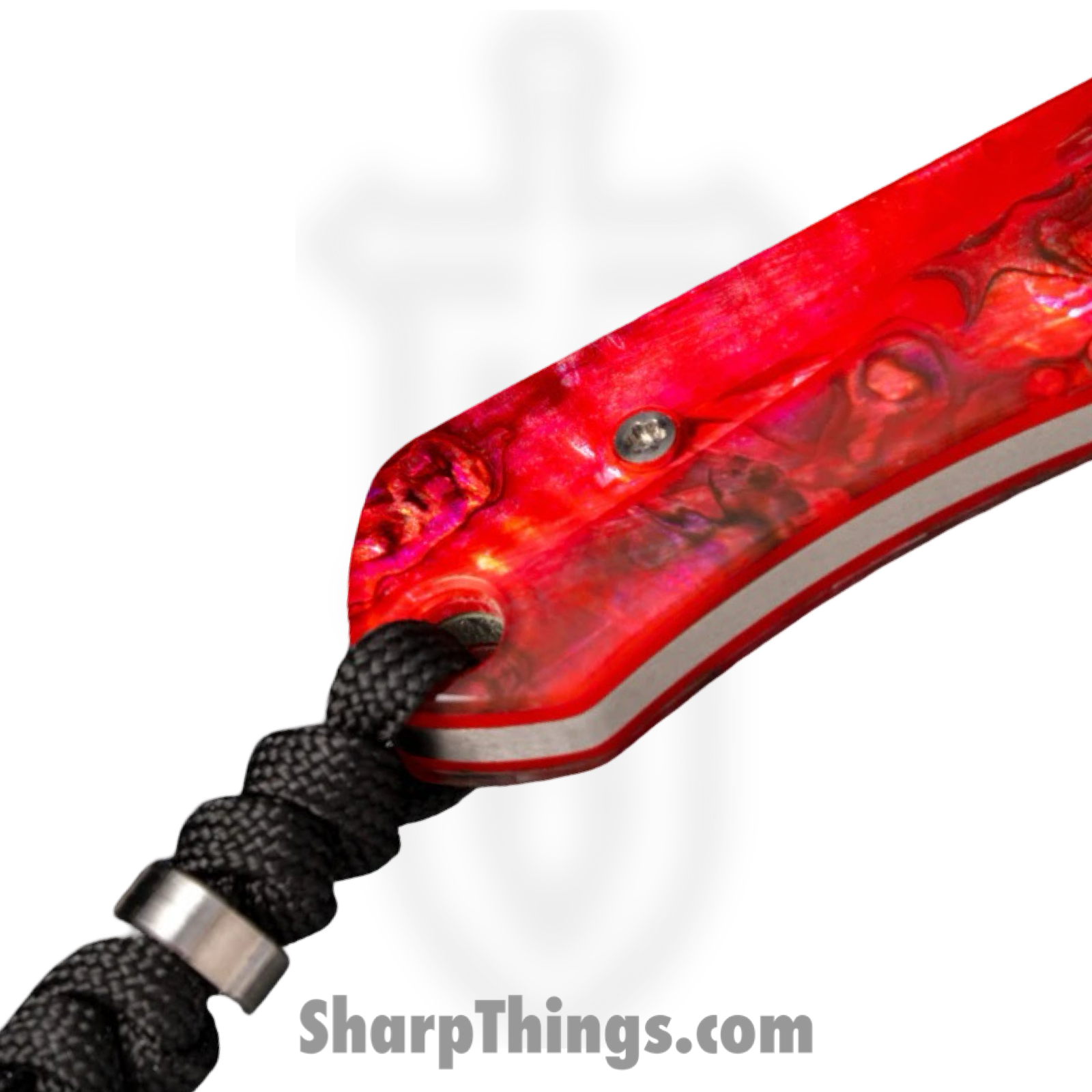 Jack Wolf Knives – COLLU-01-RED-ABALONE – Collusion – Fixed Blade Knife – S90V Satin Reverse Tanto – Abalone – Red
