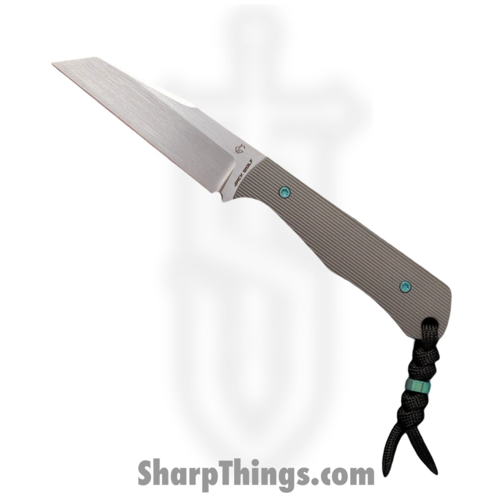 Jack Wolf Knives – COLLU-01-TITAN-STRIPE – Collusion – Fixed Blade Knife – S90V Satin Reverse Tanto – Titanium Stripe – Gray Blue