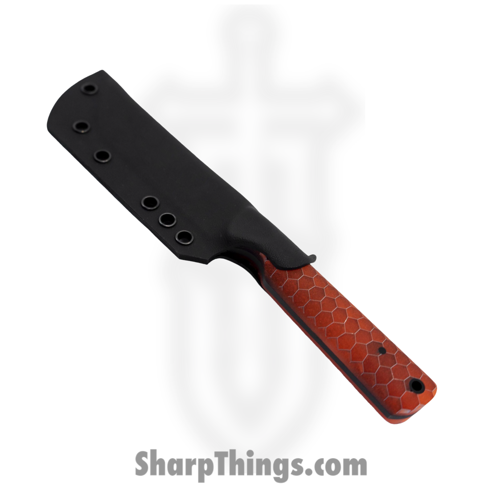 Crafted for the serious outdoorsman or everyday carry enthusiast, the JRs Knives EDC XL Tanto (Model: JRsTntXLOrg) is a formidable fixed-blade knife that balances rugged functionality with eye-catching design. Handmade in Merriam Woods, Missouri, this XL version of JRs Knives’ classic tanto offers enhanced cutting performance, durability, and ergonomic handling. Built from high carbon 1095 steel, the blade is chisel-ground and finished with a protective black coating to enhance corrosion resistance while preserving the steel’s natural toughness and edge retention. The full tang construction ensures strength from tip to pommel, while the distinctive orange and silver honeycomb-patterned G-10 scales offer superior grip and style. These vibrant scales are secured with black pins for a sleek, low-profile look that enhances both aesthetics and durability. This knife is not only a workhorse—capable of piercing, prying, and slicing through tough materials—it’s also a stunning example of handcrafted American knife-making. Perfect for EDC, bushcraft, tactical applications, or as a striking addition to any knife collection, the JRsTntXLOrg delivers performance you can count on. The included Kydex sheath features multiple mounting holes, allowing for versatile carry options whether you’re in the field, on the job, or out exploring.